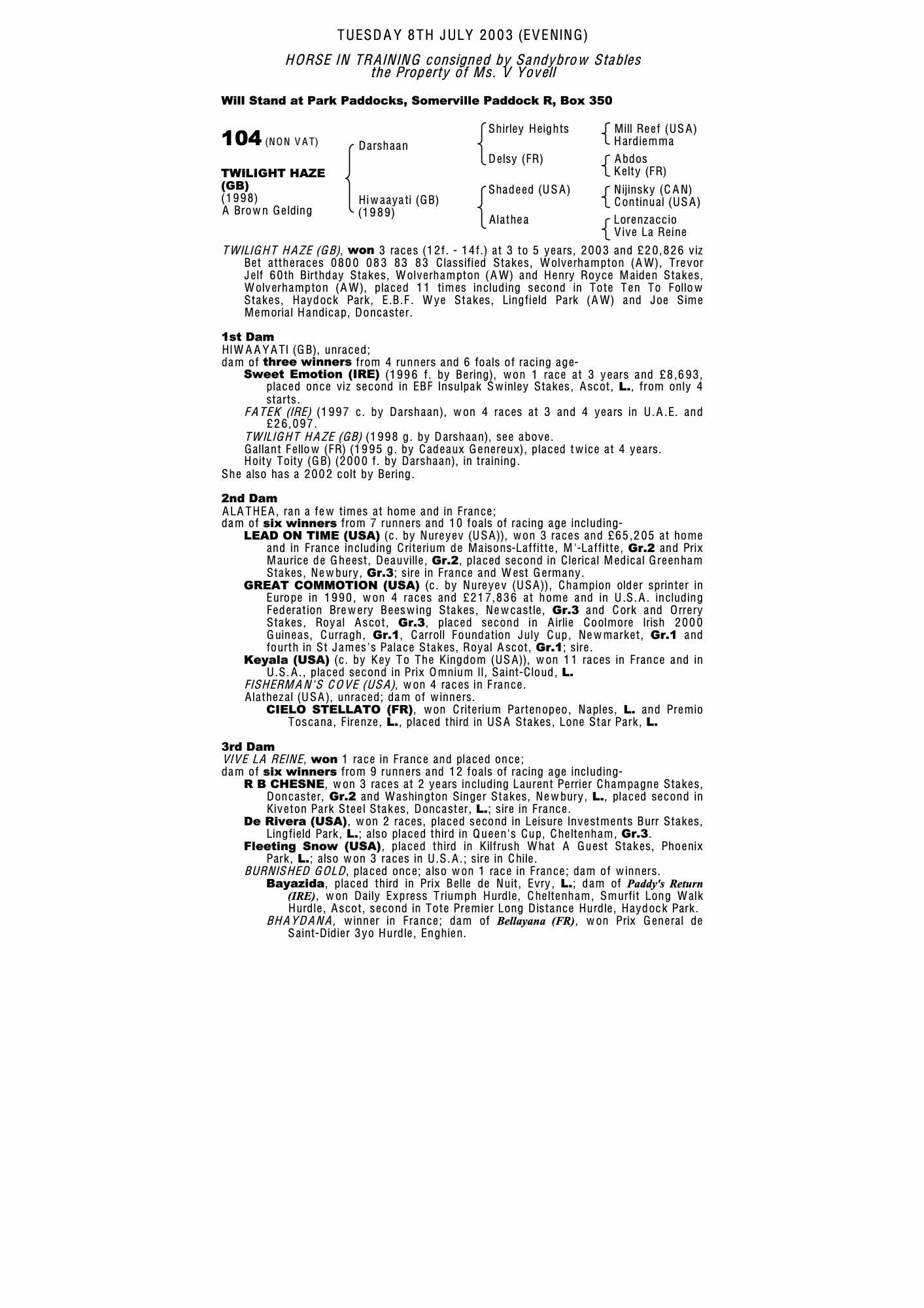 Autumn Horses in Training Sale 2001 lot 496 Powerful Gaze (IRE) (C. by Nashwan (USA)), Gainsborough Stables Limited=>Panayiotis Kastrinos 2,500 gns
