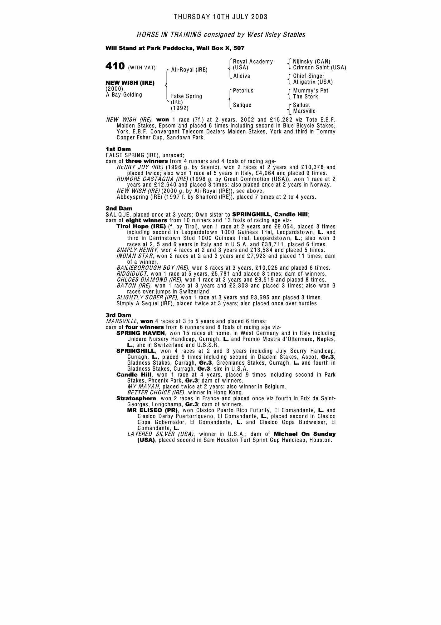 September Yearling Sale 1998 lot 461 F. by Shalford (IRE) 1997, Ardrums House Stud (Agent)=>Cash €3,804