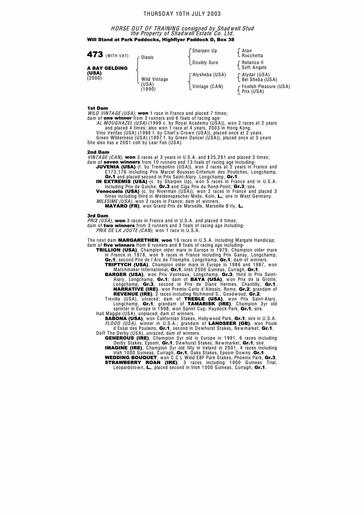 December Mare Sale 2000 lot 2444 Green Wilderness (USA) (F. by Green Dancer (USA)), Pegasus Stables=>BBA (UK) 8,000 gns
