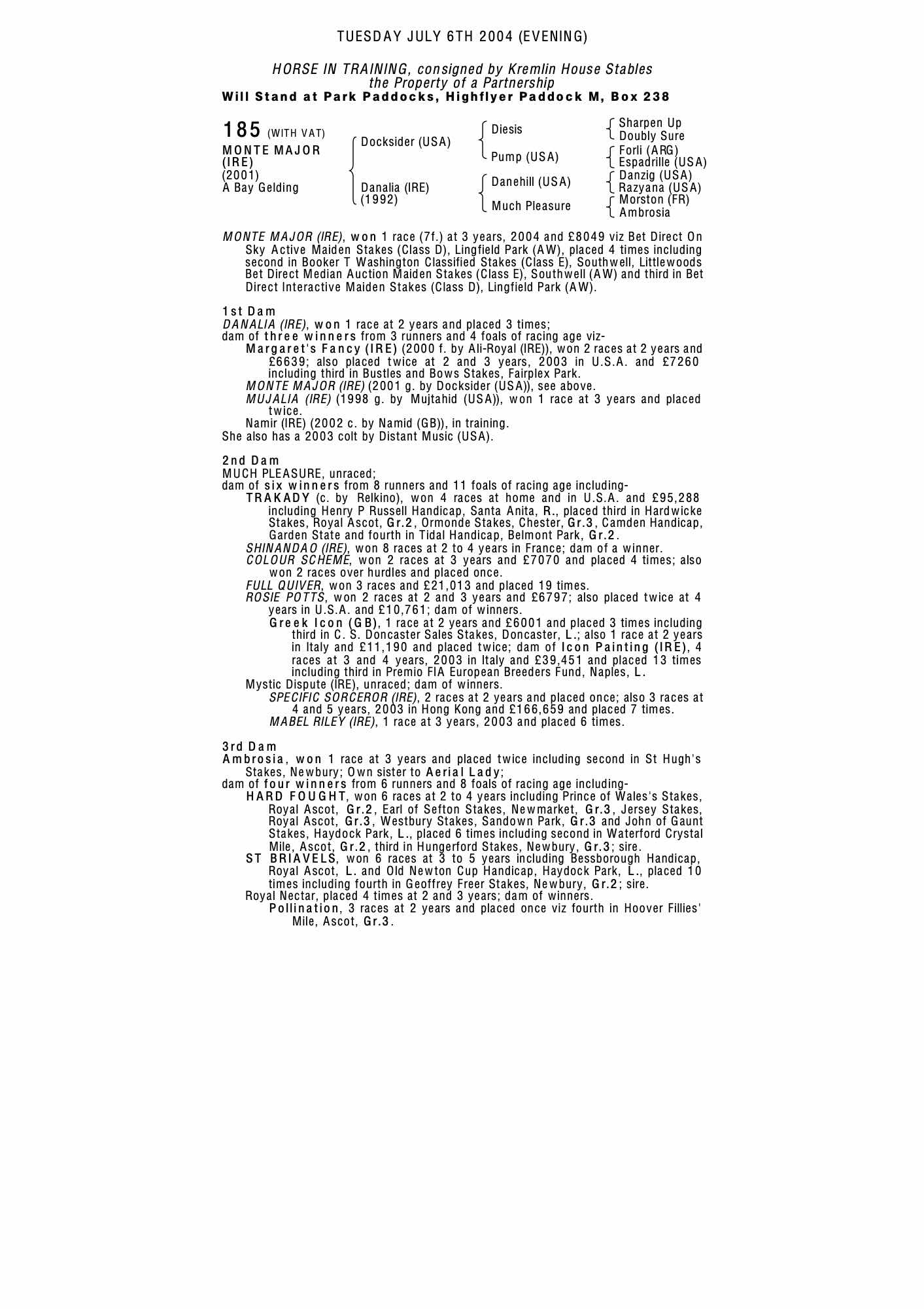 October Yearling Sale, Book 2 2004 lot 923 C. by Distant Music (USA) 2003, Lynn Lodge Stud, Ireland=>Lot Not Sold 19,000 gns
