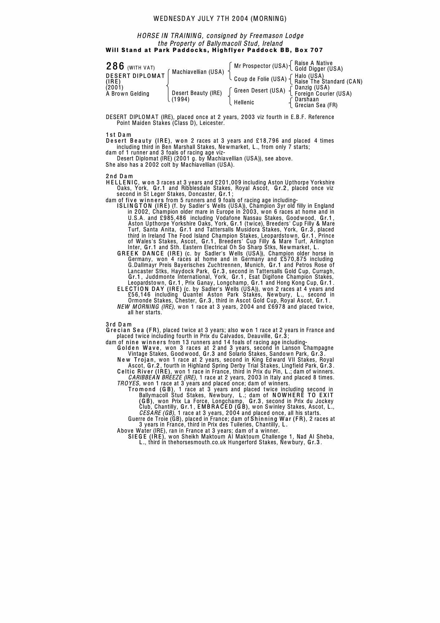 December Yearling Sale 2003 lot 191 C. 2002, Kildaragh Stud, Ireland=>William R Muir 30,000 gns