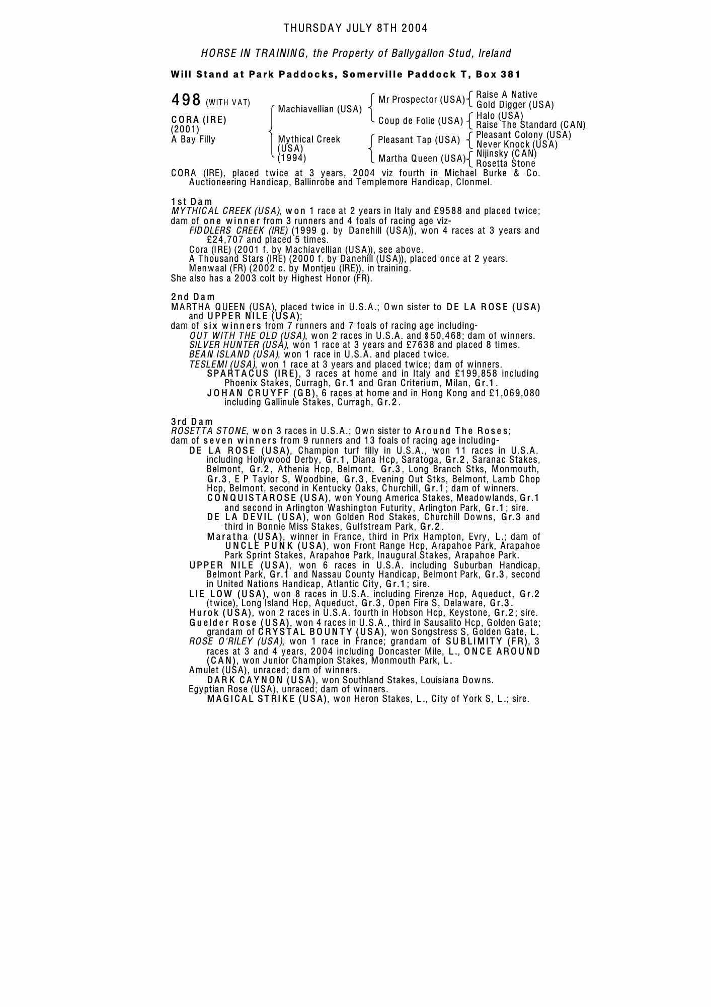 October Yearling Sale 2002 lot 59 F. 2001, Ballygallon Stud, Ireland=>Vendor 45,000 gns