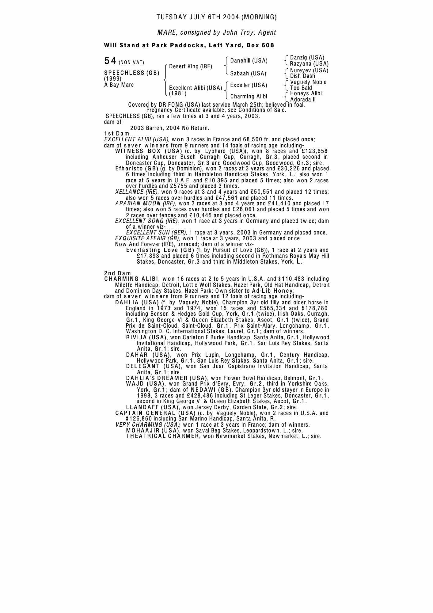 December Yearling Sale 2003 lot 221 F. by Vettori (IRE) 2002, Herringswell Manor Stud, Agent=>Tony Cowell 10,000 gns