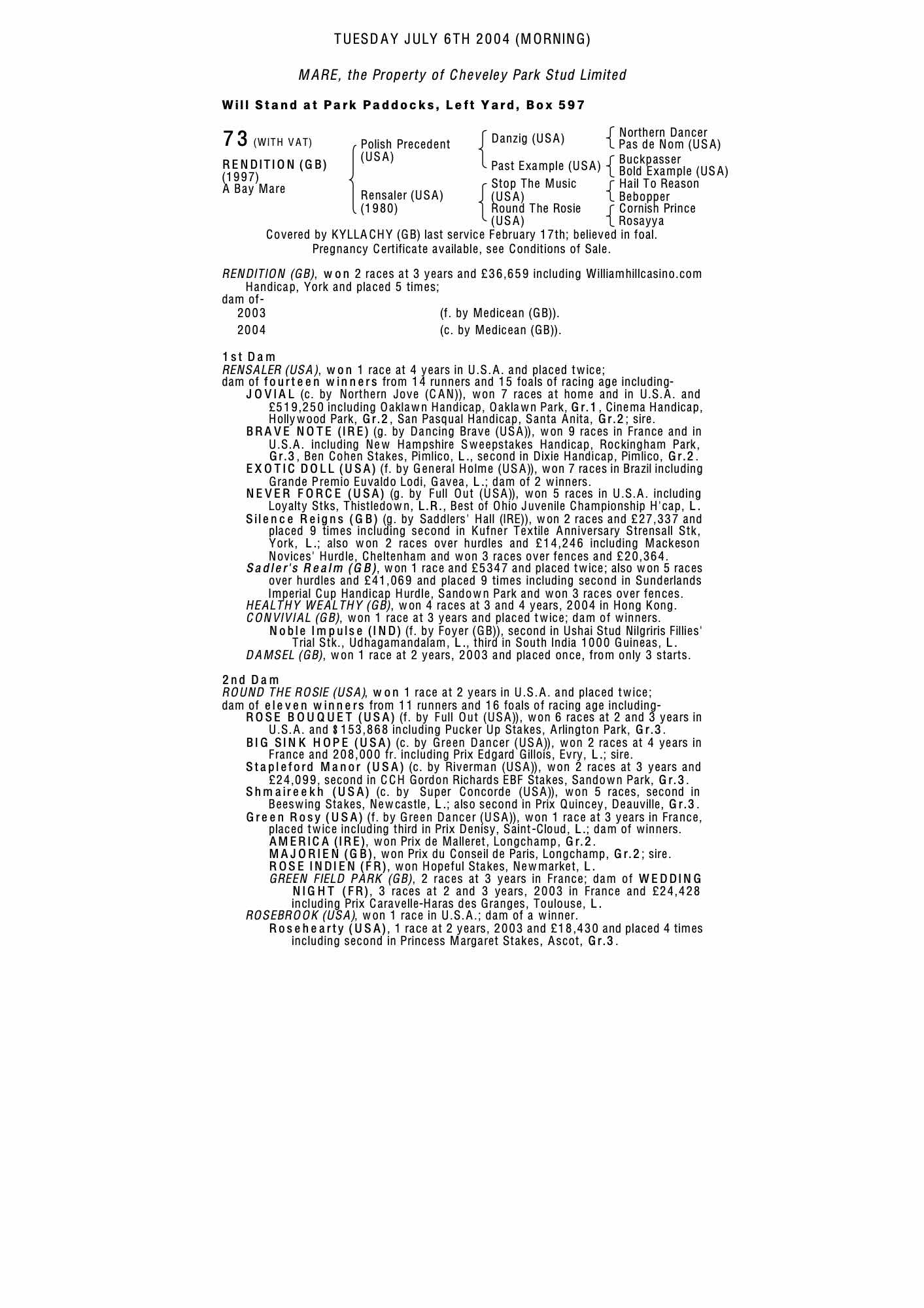 July Sale 2006 lot 196 Baltic Rhapsody (GB) (M.), The Castlebridge Consignment=>Seamus Kennedy 105,000 gns