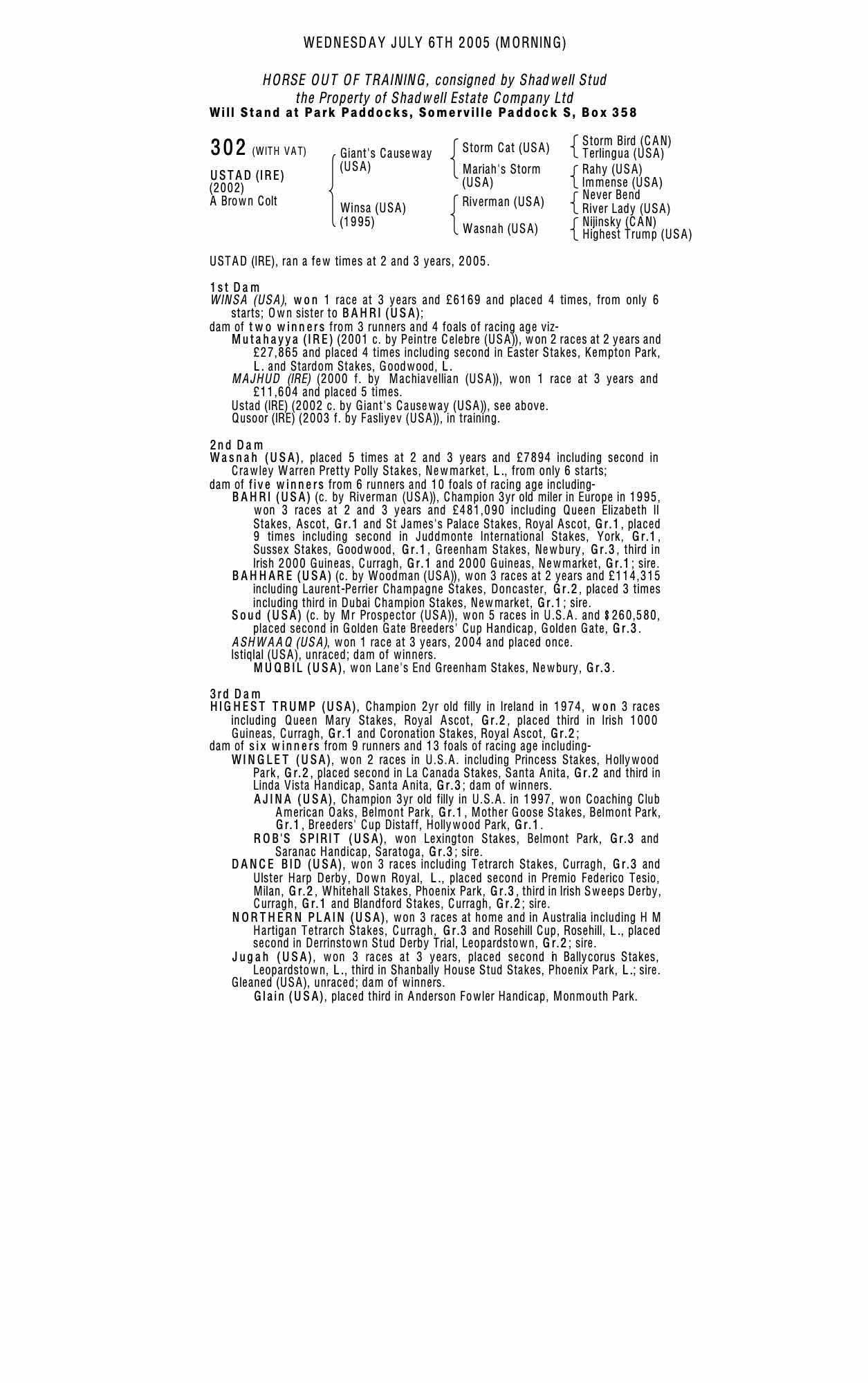 Consignor: Shadwell Stud
