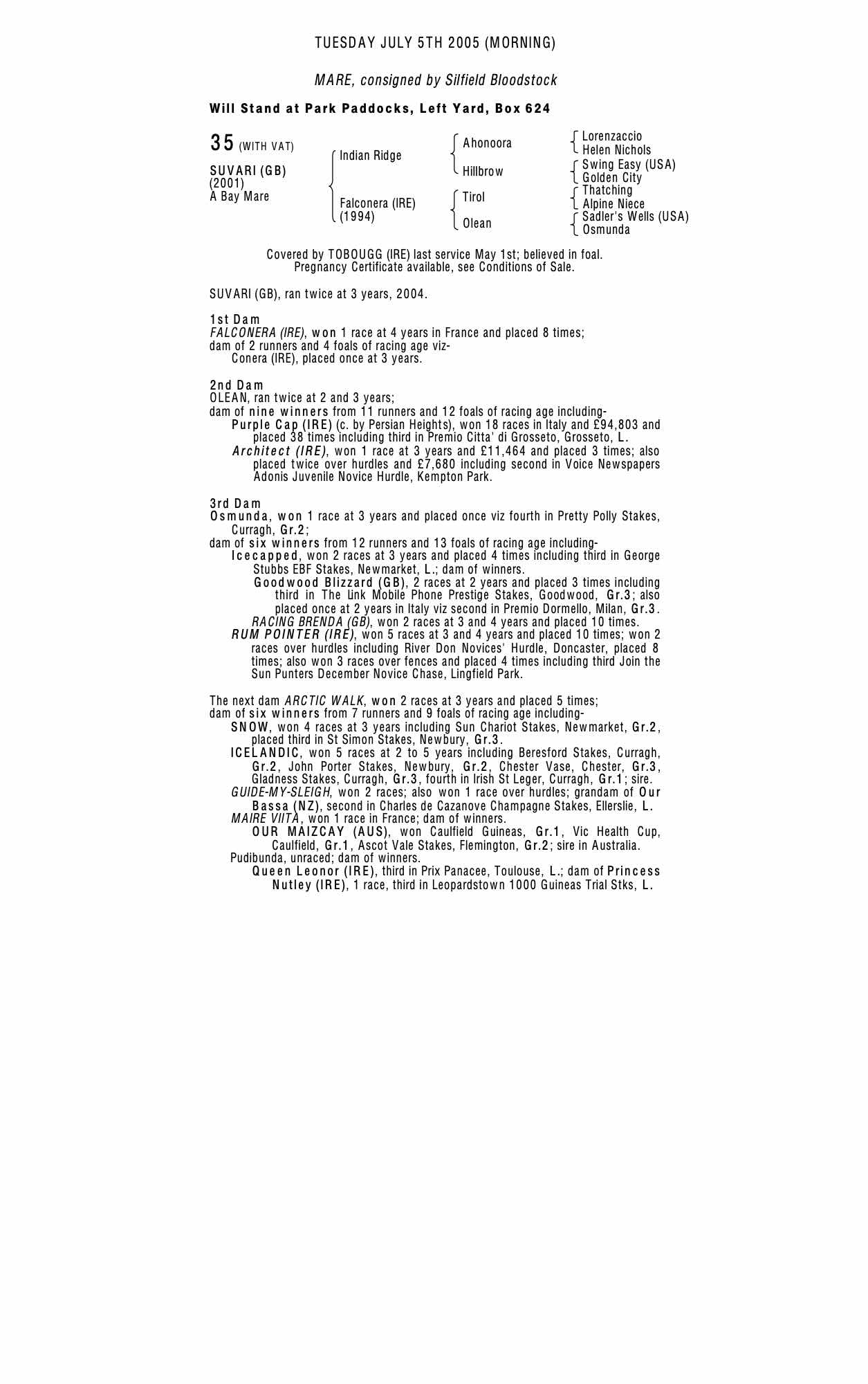 December Foal Sale 2001 lot 562 F. , Silfield Bloodstock=>BBA Ireland 40,000 gns