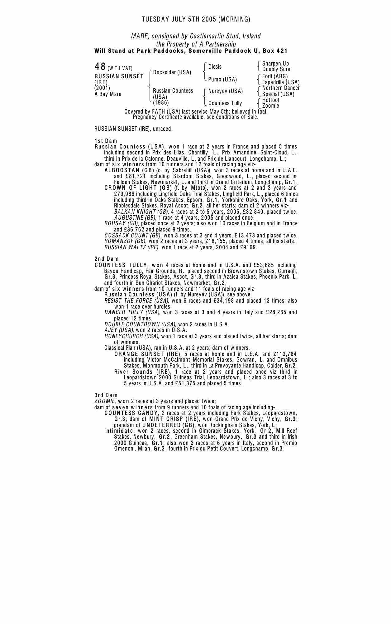 December Mare Sale 2005 lot 1763 Russian Waltz (IRE) (M. by Spectrum (IRE)), The Castlebridge Consignment=>Robert Fagan 63,000 gns