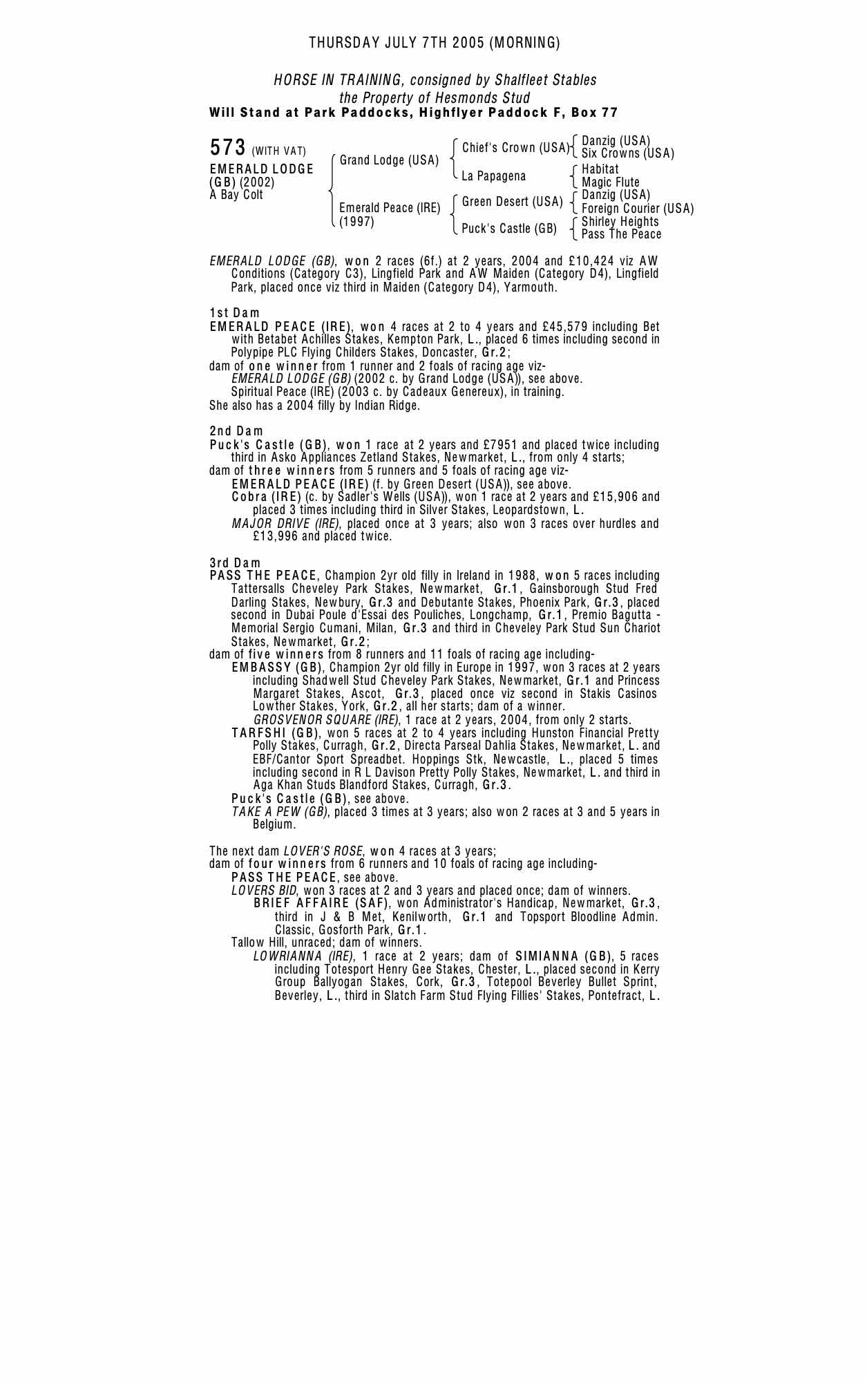 July Sale 2009 lot 98 Carved Emerald (GB) (F. by Pivotal (GB)), Castlemartin Stud, Ireland=>Suzanne Roberts 40,000 gns