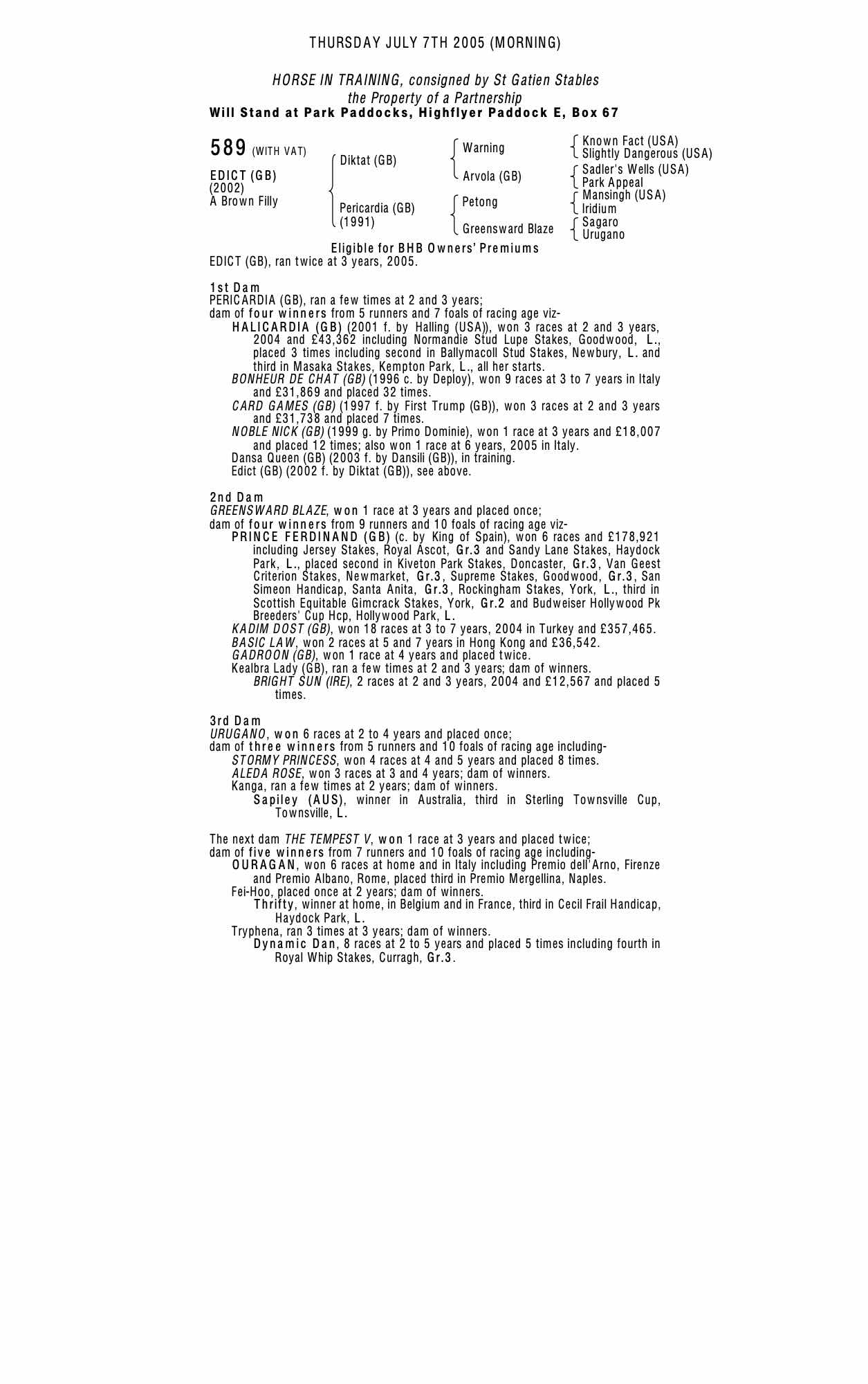 December Mare Sale 2004 lot 1624 Halicardia (GB) (F. by Halling (USA)), Pendley Farm Stables=>Lodge Park Stud 64,000 gns