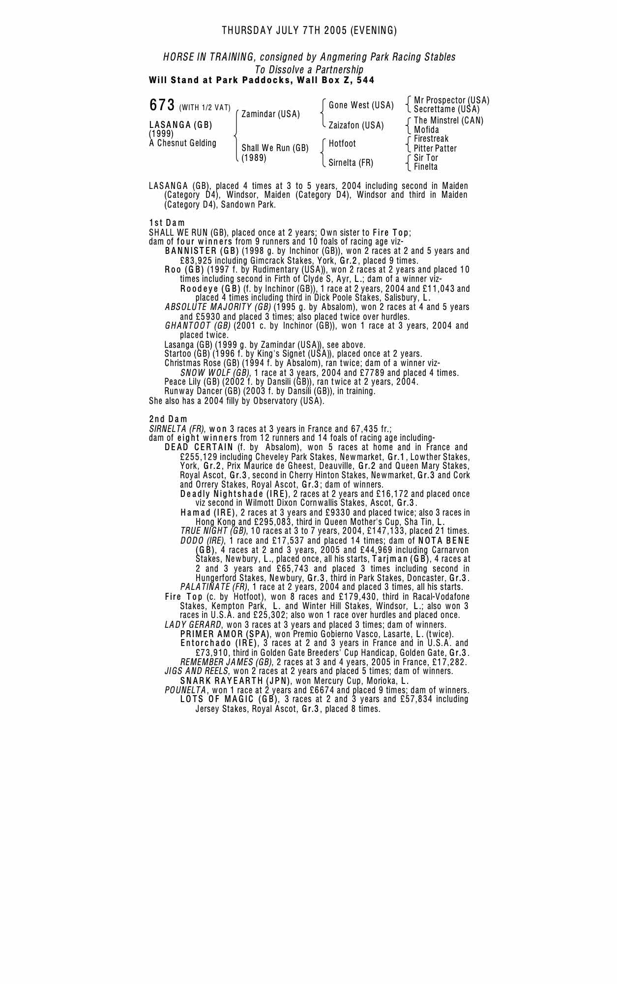 October Yearling Sale, Book 2 2004 lot 1094 F. by Dansili (GB) 2003, Jamie Railton, Agent=>Edward Lynam 34,000 gns