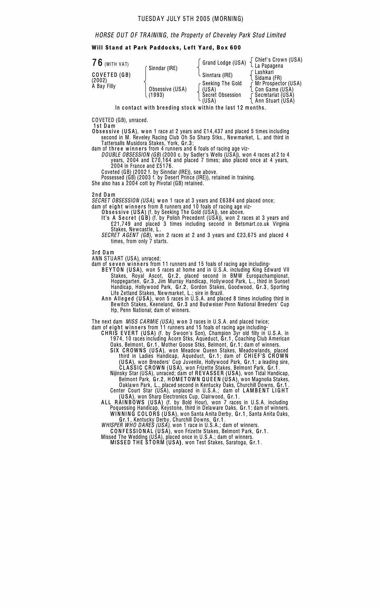 Autumn Horses in Training Sale 2005 lot 1070 Possessed (GB) (F. by Desert Prince (IRE)), Kremlin House Stables=>GM Boyer 21,000 gns