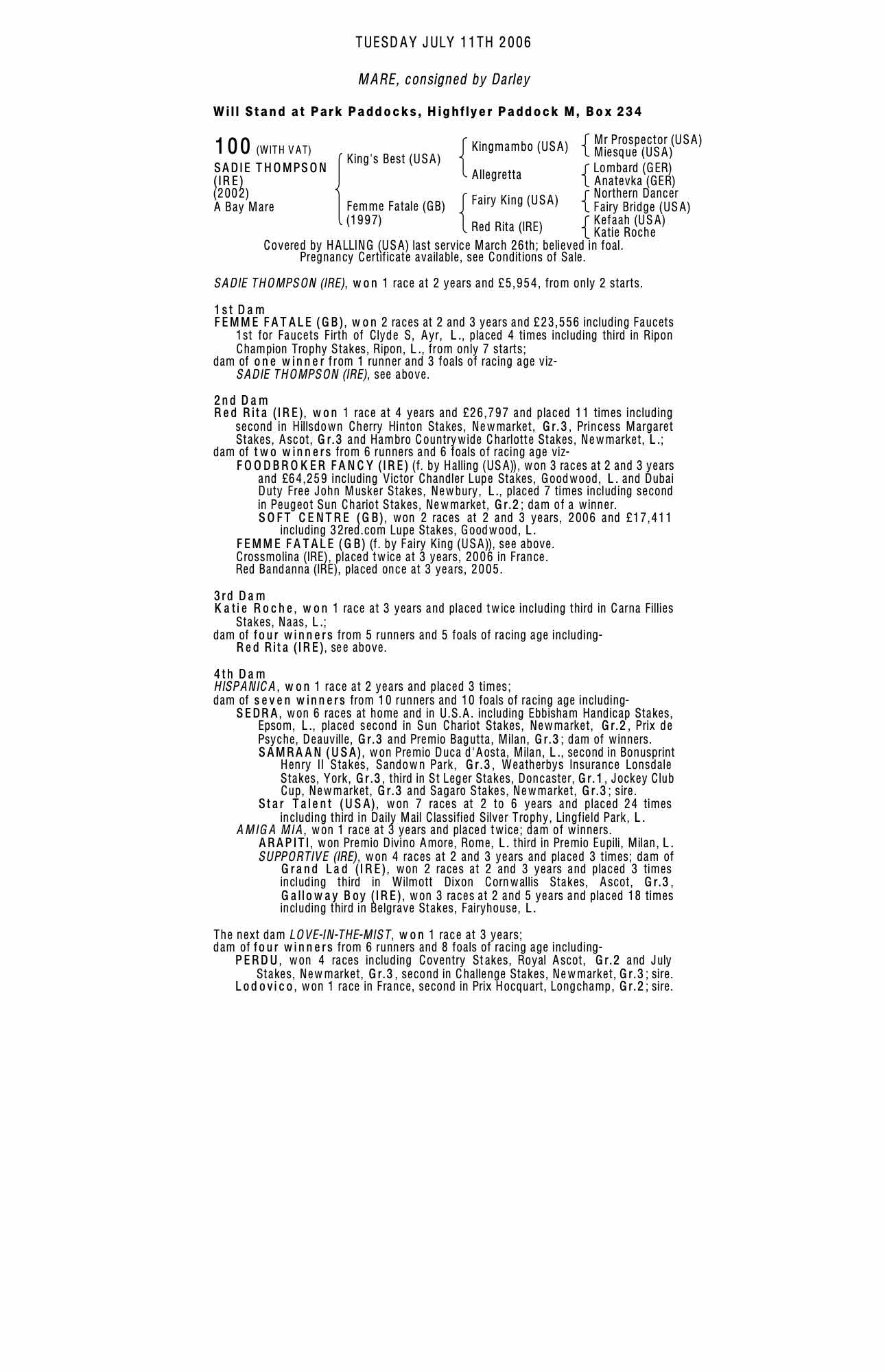 October Yearling Sale, Book 1 2005 lot 226 F. by Sakhee (USA) 2004, Ballyhimikin Stud, Ireland=>The Lavington Stud 65,000 gns