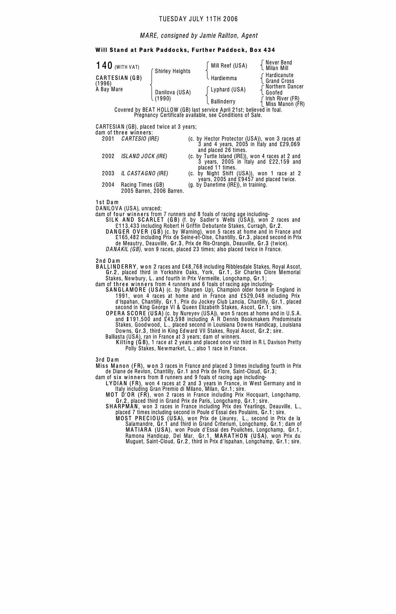 July Sale 2004 lot 426 Danger Over (GB) (H. by Warning), Kingsdown Stables=>Ann Duffield 37,000 gns