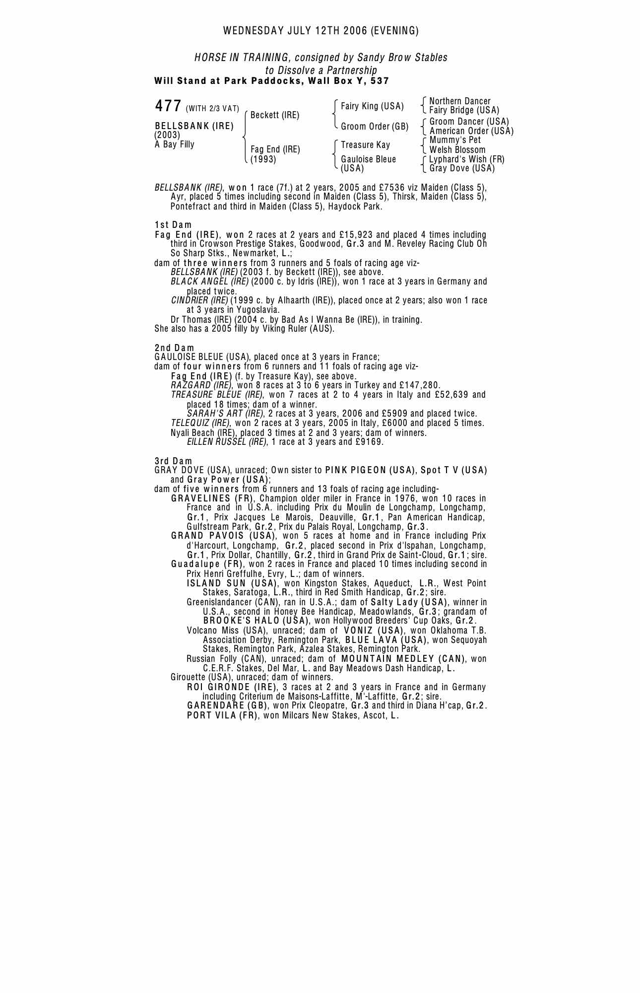 December Foal Sale 2003 lot 1068 F. 2003, Ballysax Manor Stud, Ireland (Agent)=>Tally-ho Stud 7,500 gns