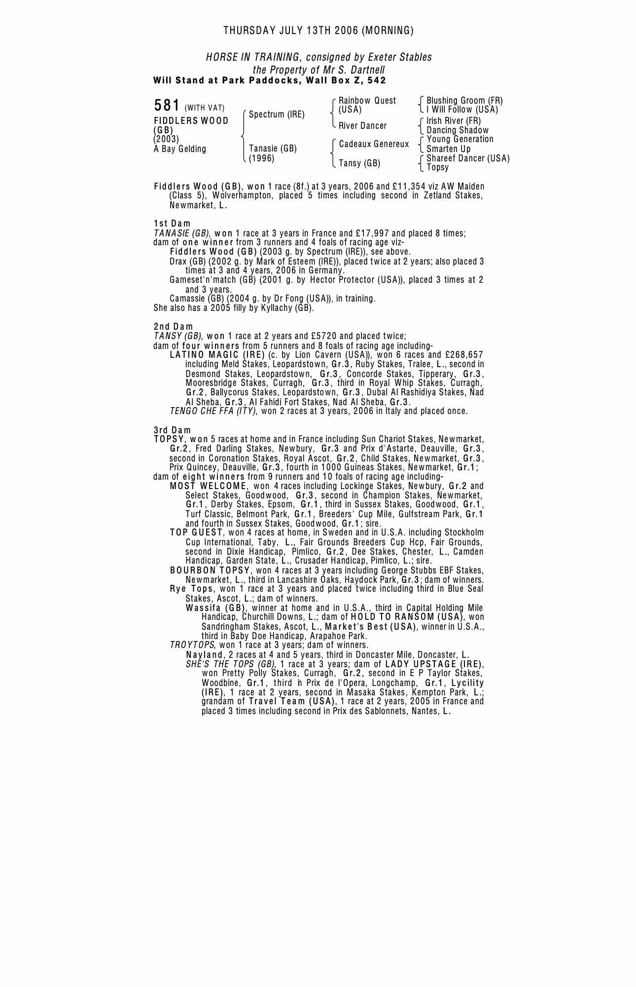 October Yearling Sale, Book 2 2004 lot 1126 C. 2003, Minster Stud=>Lot Not Sold 13,000 gns