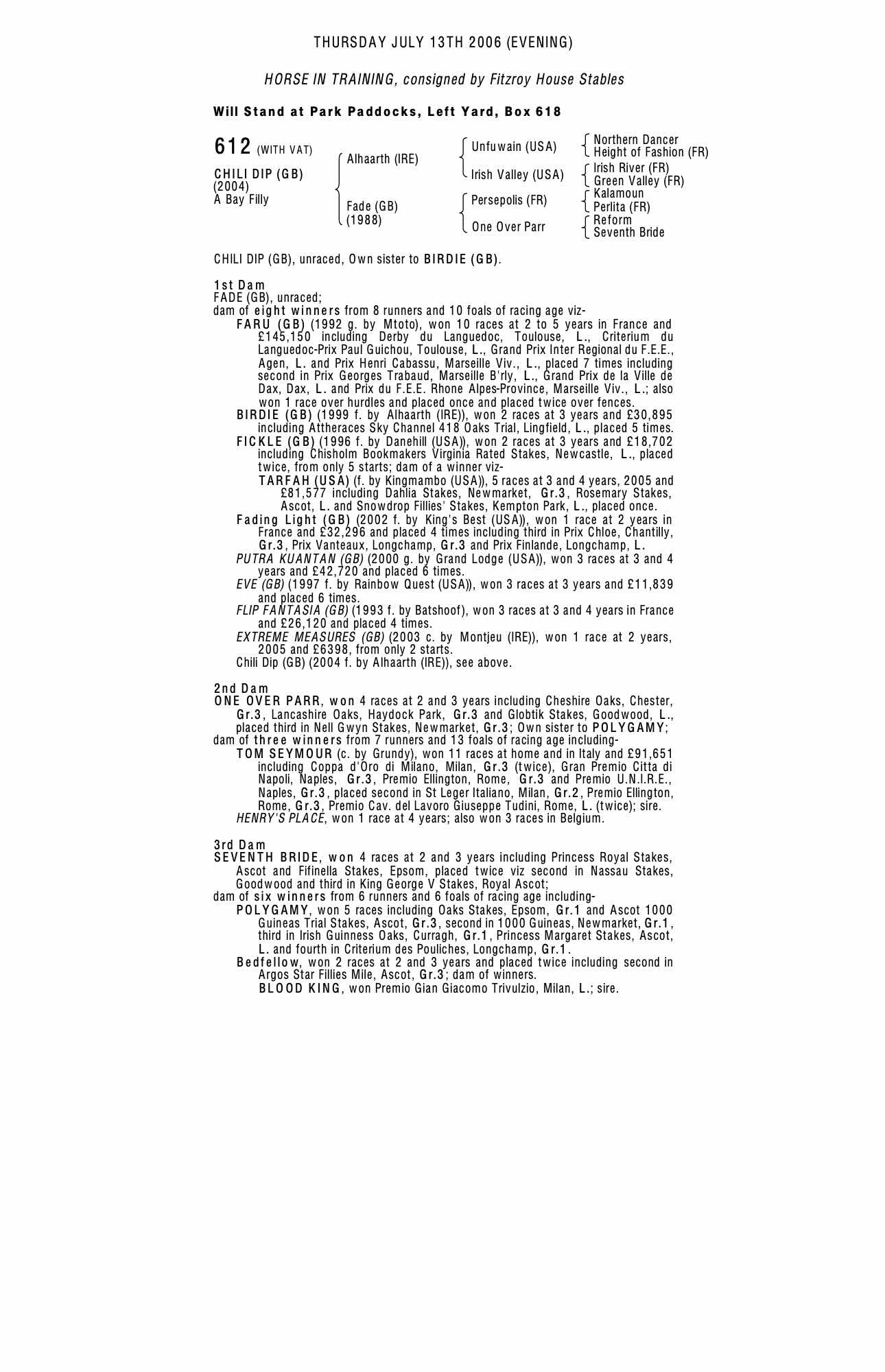 October Yearling Sale 1998 lot 654 F. by Rainbow Quest (USA) , Floors Stud=>John Warren Bloodstock 28,000 gns