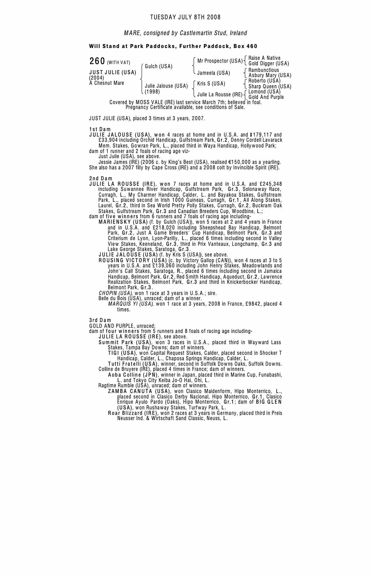 December Mare Sale 2010 lot 1594 Julie's Jet (IRE) (F. by Cape Cross (IRE)), Castlemartin Stud, Ireland (Agent)=>Lanwades Stud 22,000 gns
