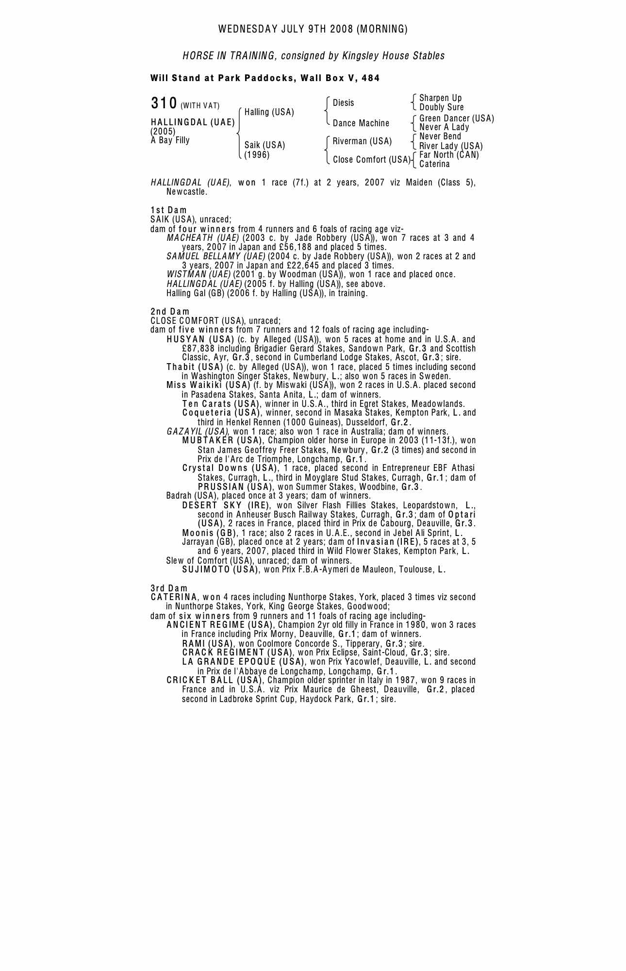 Autumn Horses in Training Sale 2009 lot 812 Halling Gal (GB) (F.), Linkslade Stables (W. Muir)=>Lot Not Sold 9,500 gns