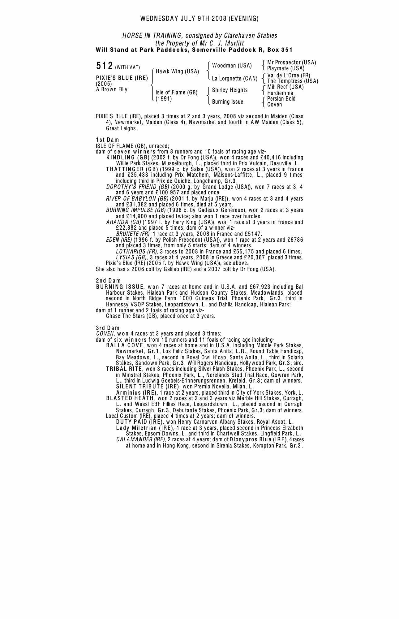 July Sale 2004 lot 273 River of Babylon (GB) (F. by Marju (IRE)), Fitzroy House Stables=>VENDOR 14,000 gns