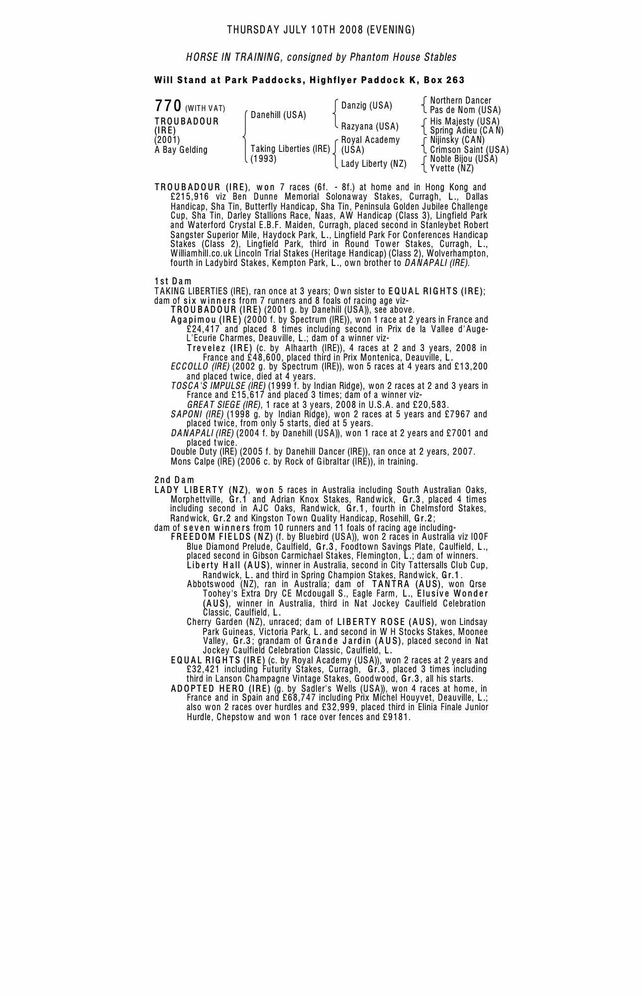 Autumn Horses in Training Sale 2001 lot 571 Saponi (IRE) (G. by Indian Ridge), Manton House Stables=>Guy Stephenson 8,000 gns