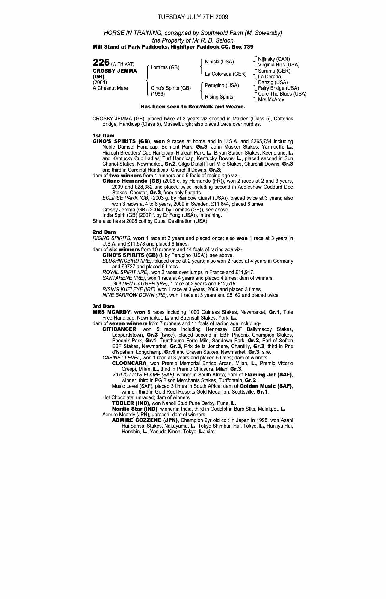 December Mare Sale 2008 lot 2612 Ginos Destination (GB) (F. by Dubai Destination (USA)), Newsells Park Stud Ltd.=>Osama Omar Muttawa 1,000 gns