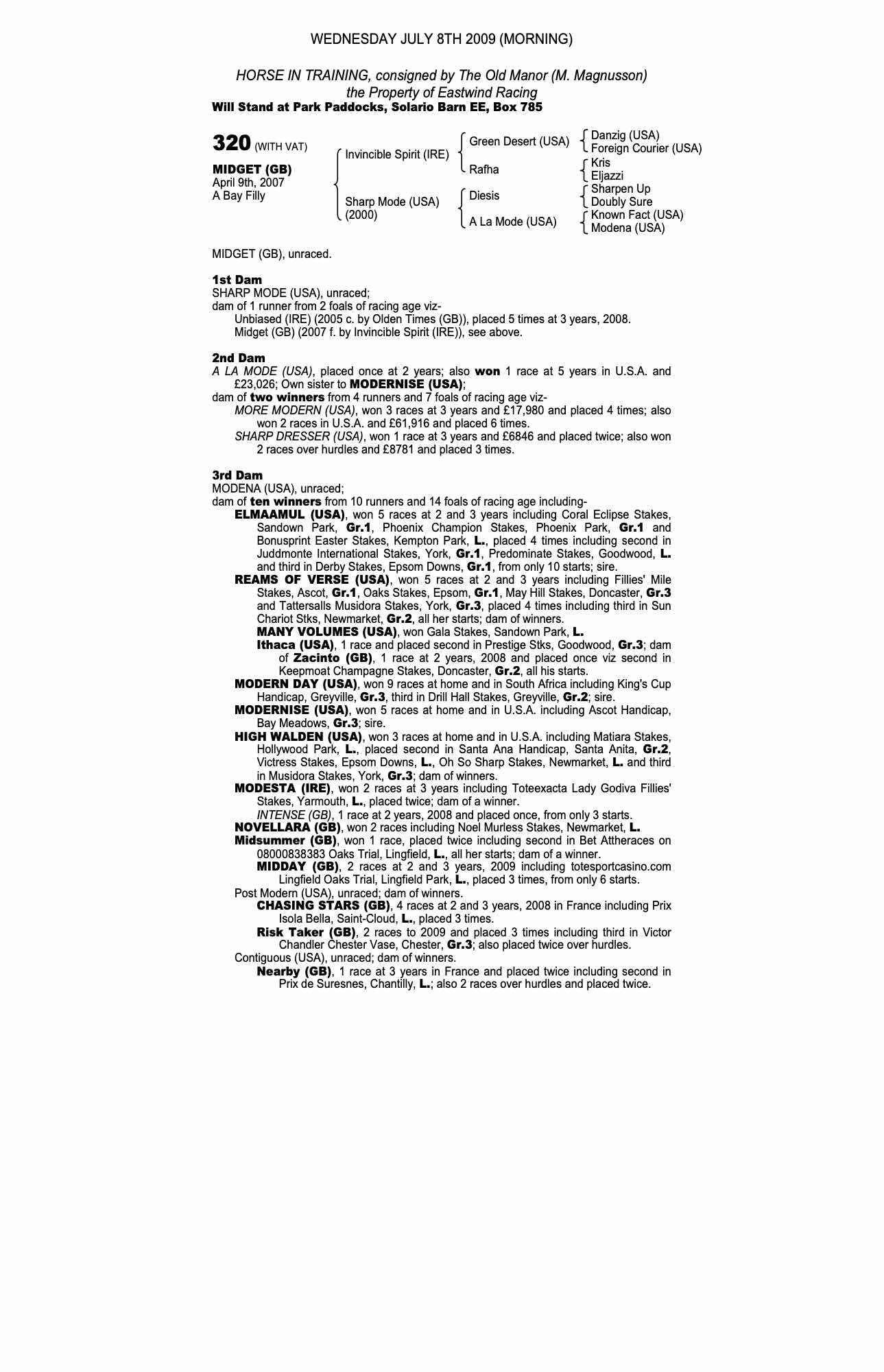 October Yearling Sale, Book 2 2006 lot 1458 C. by Olden Times (GB) 2005, Voute Sales Ltd. (Agent)=>Vendor 50,000 gns