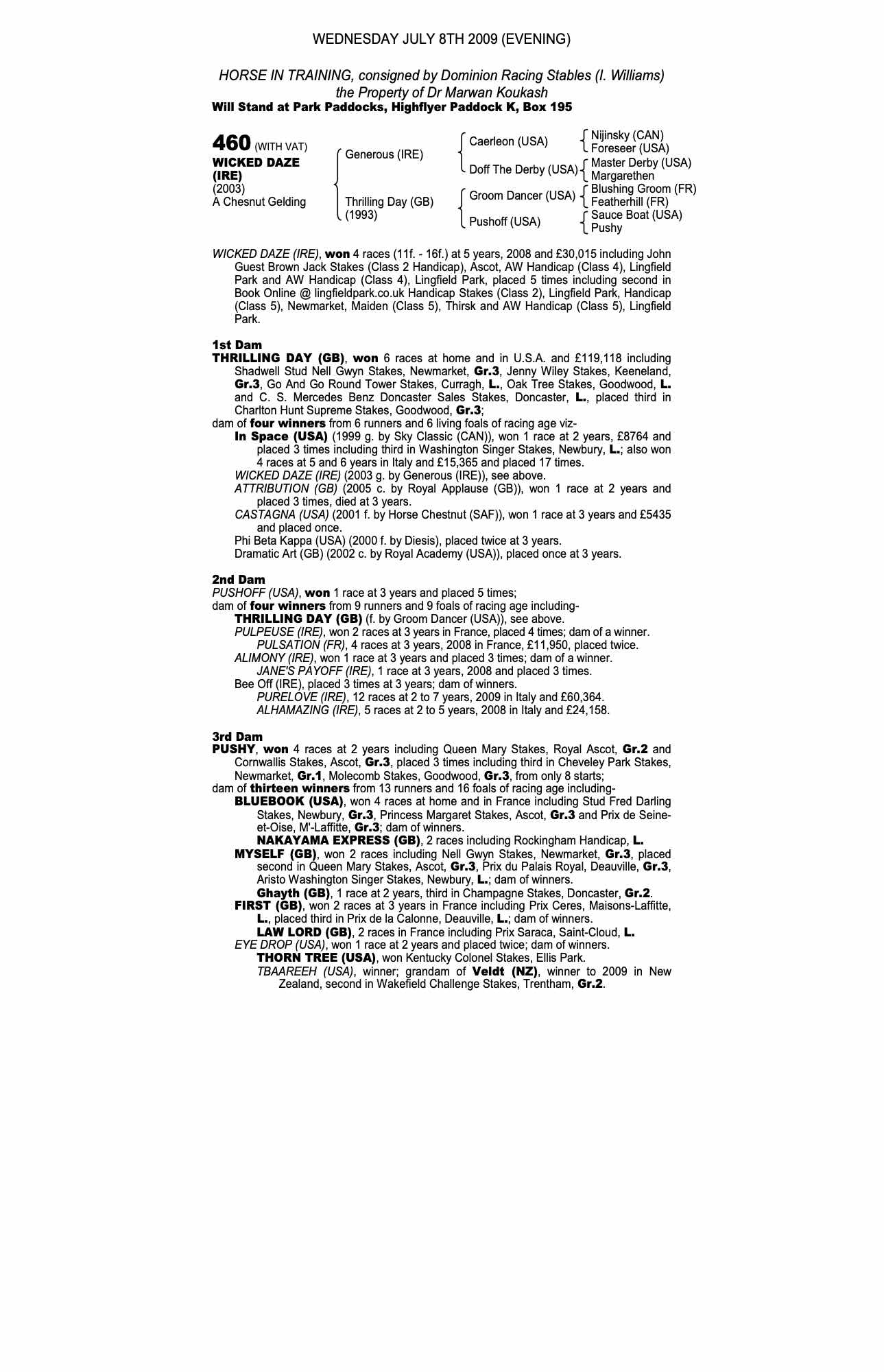 Consignor: Dominion Racing Stables (I. Williams)
