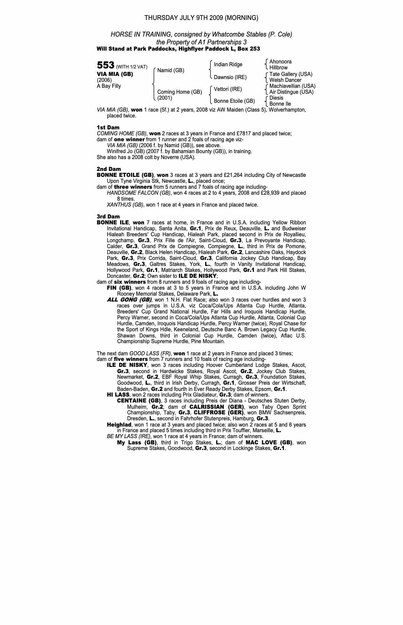 July Sale 2010 lot 715, Eastwell Hall Stables (J.A. Harris)=>Five Star Bloodstock 1,800 gns