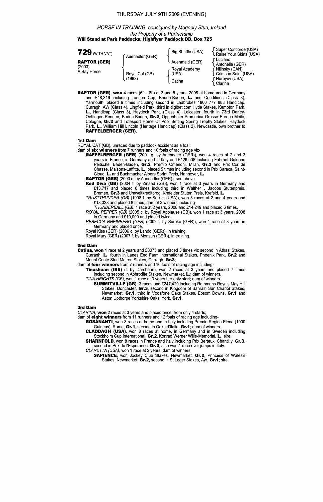 Autumn Horses in Training Sale 2009 lot 542, Mogeely Stud, Ireland=>Christian von der Recke 4,000 gns
