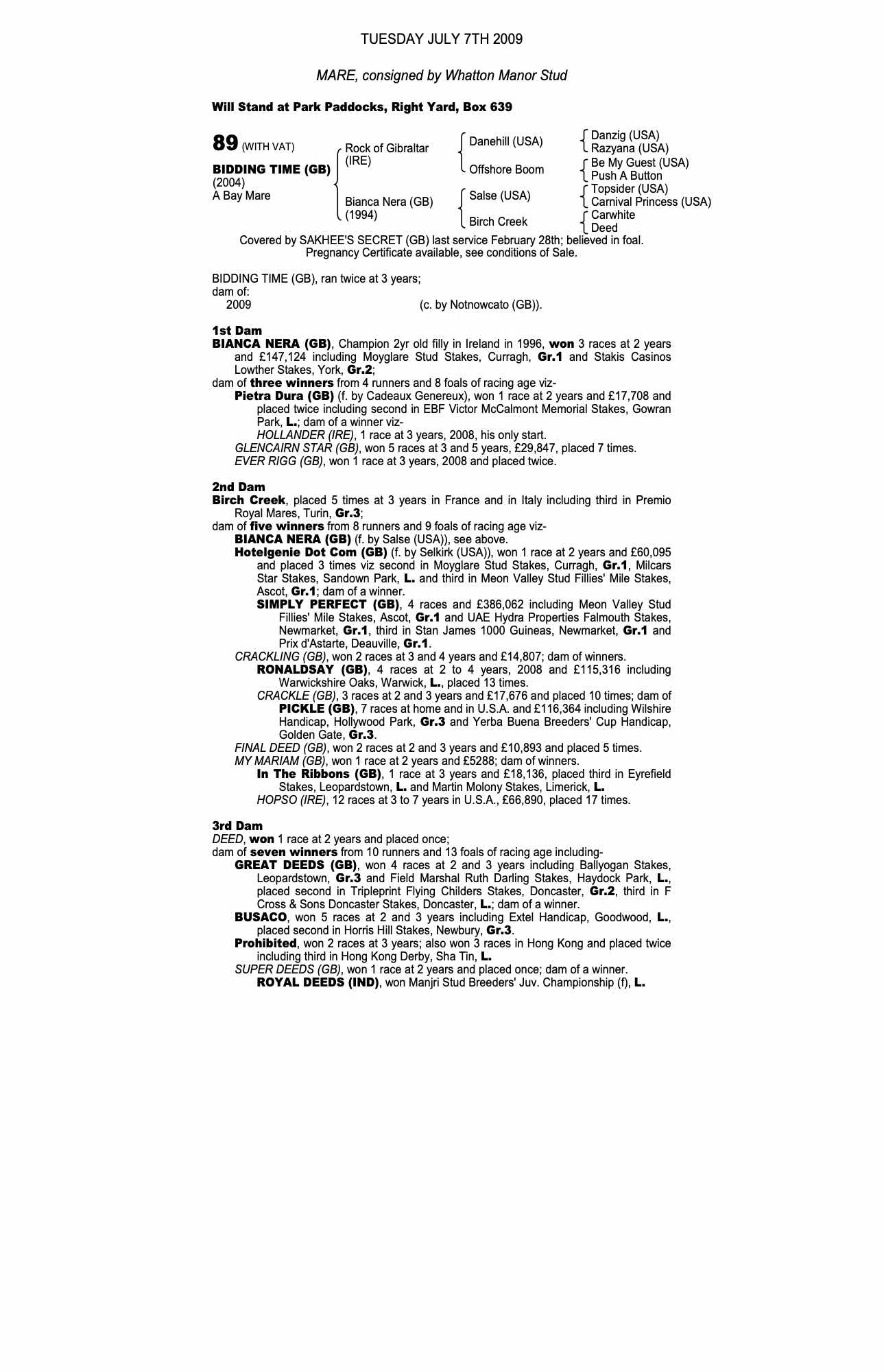 Houghton Yearling Sale 2000 lot 27 F. by Cadeaux Genereux , Whatton Manor Stud=>Demi O'Byrne 600,000 gns