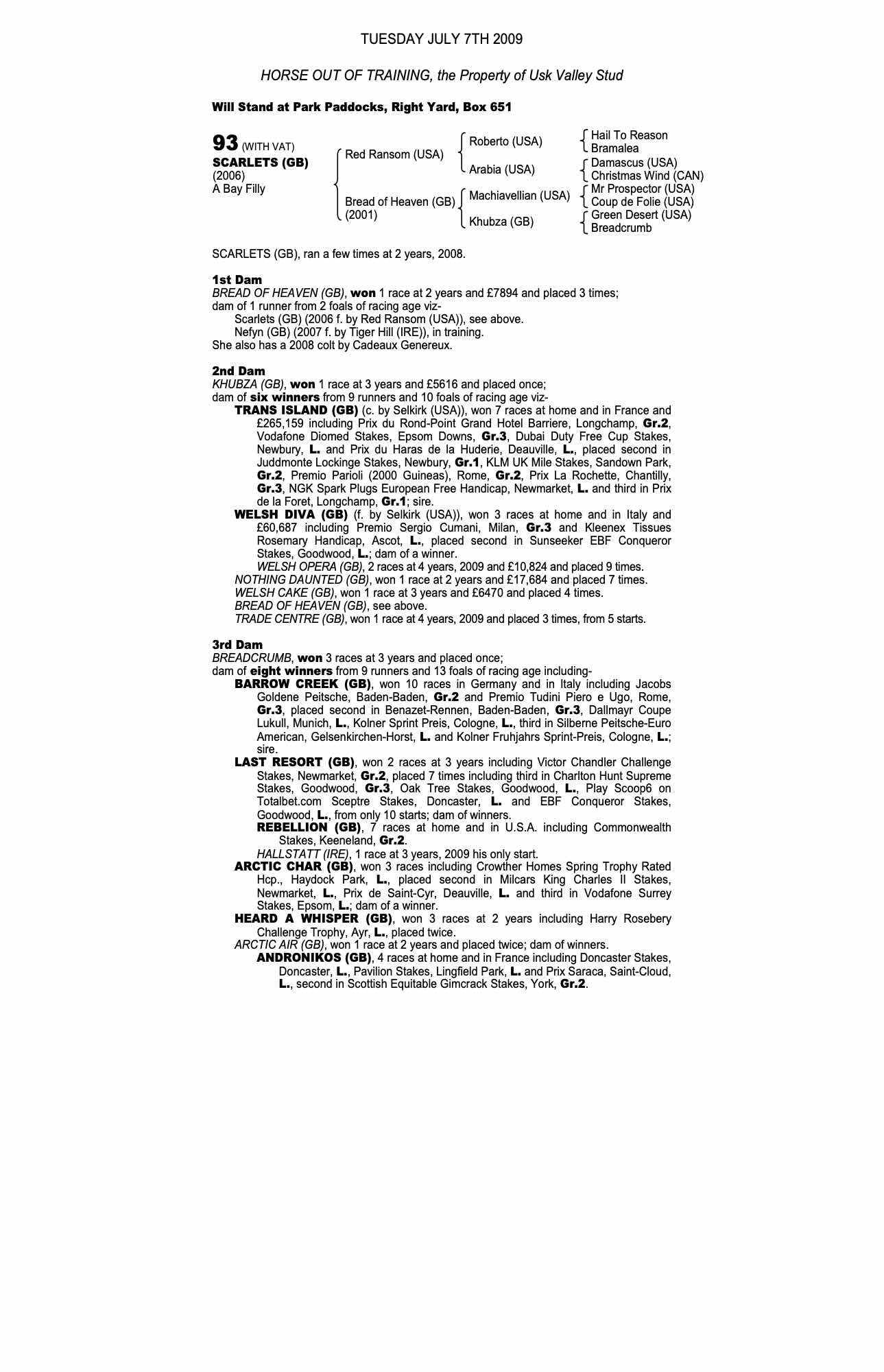 Consignor: Usk Valley Stud