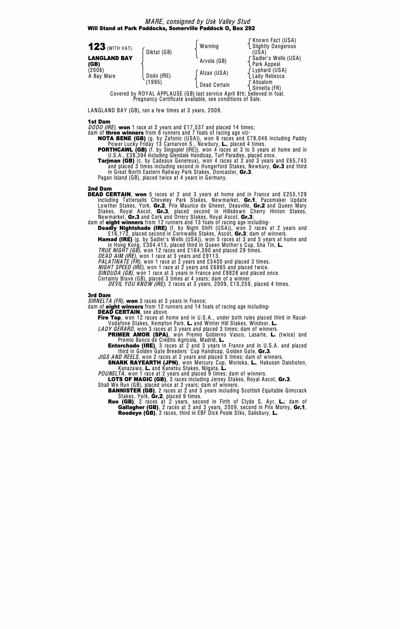 December Mare Sale 2014 lot 2360, Usk Valley Stud=>Cokay Studs 2,500 gns