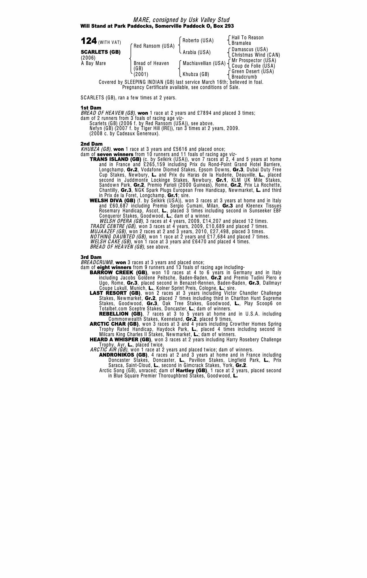 Consignor: Usk Valley Stud