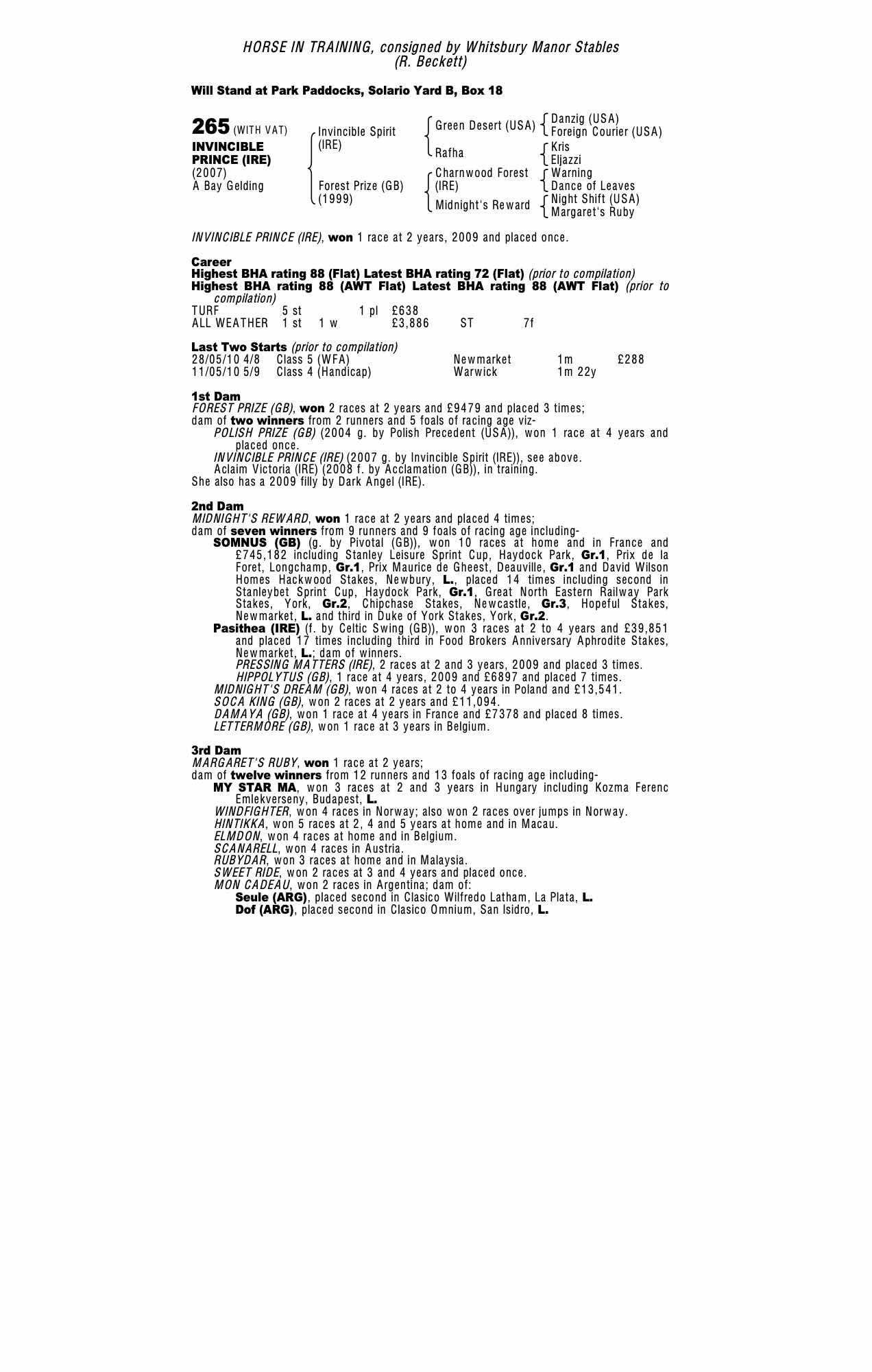 Autumn Horses in Training Sale 2009 lot 1153, Whitsbury Manor Stables (R. Beckett)=>Lot Not Sold 9,500 gns