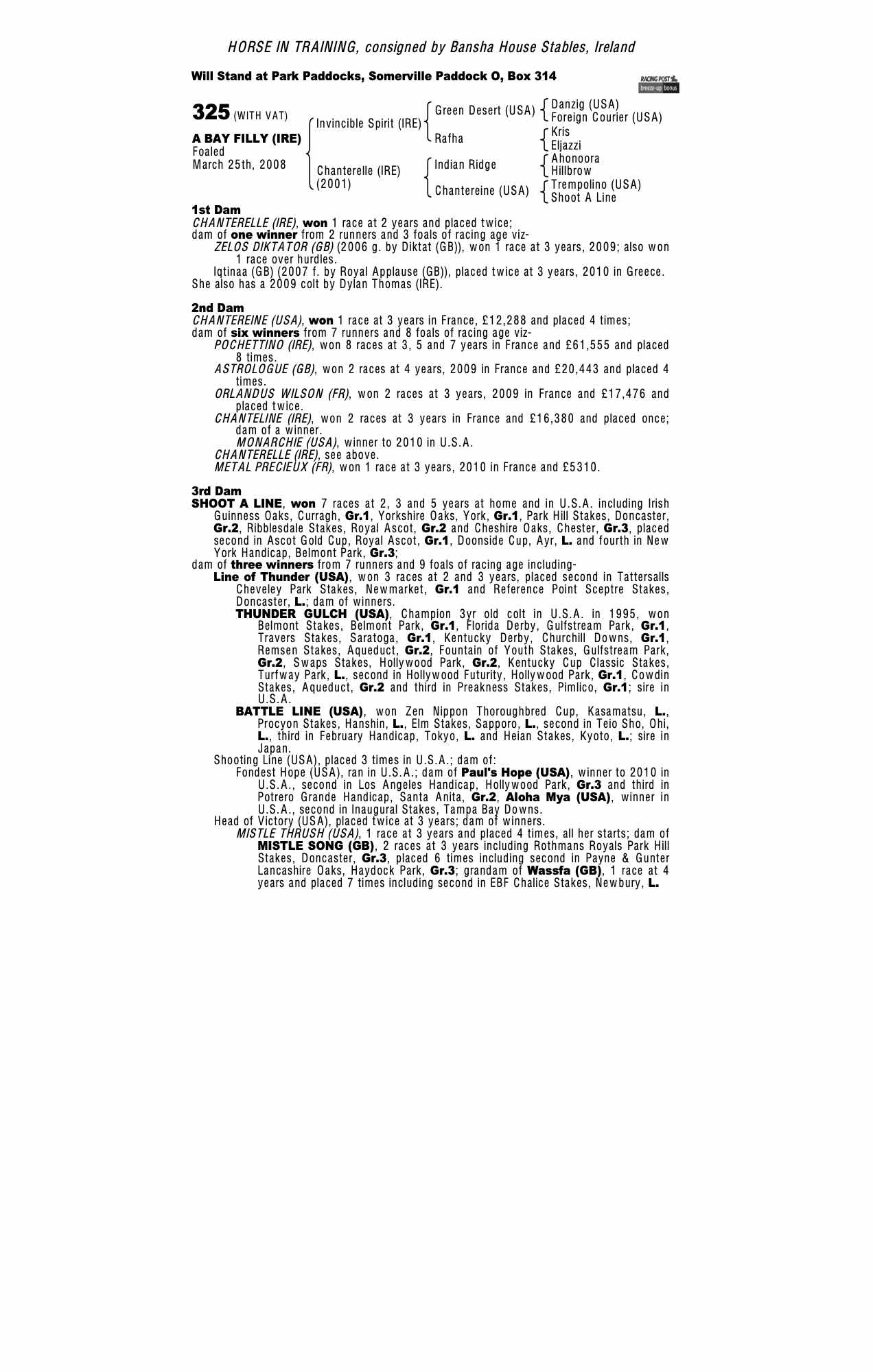 Invincible Spirit (IRE) / Chanterelle (IRE) B.F. (IRE)