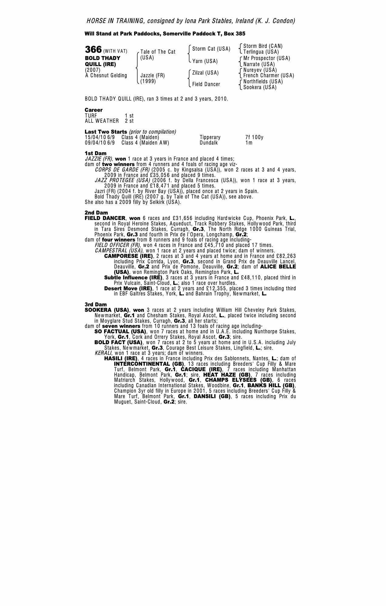 Consignor: Iona Park Stables, Ireland (K. J. Condon)