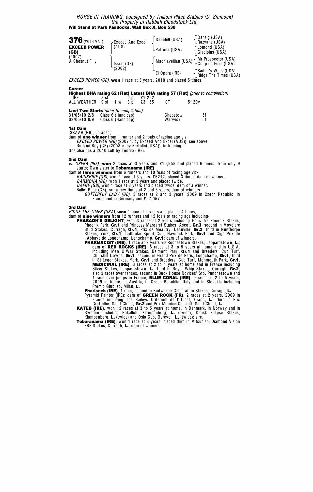 October Yearling Sale, Book 3 2008 lot 1741 F. 2007, Hillwood Stud=>David Simcock 23,000 gns