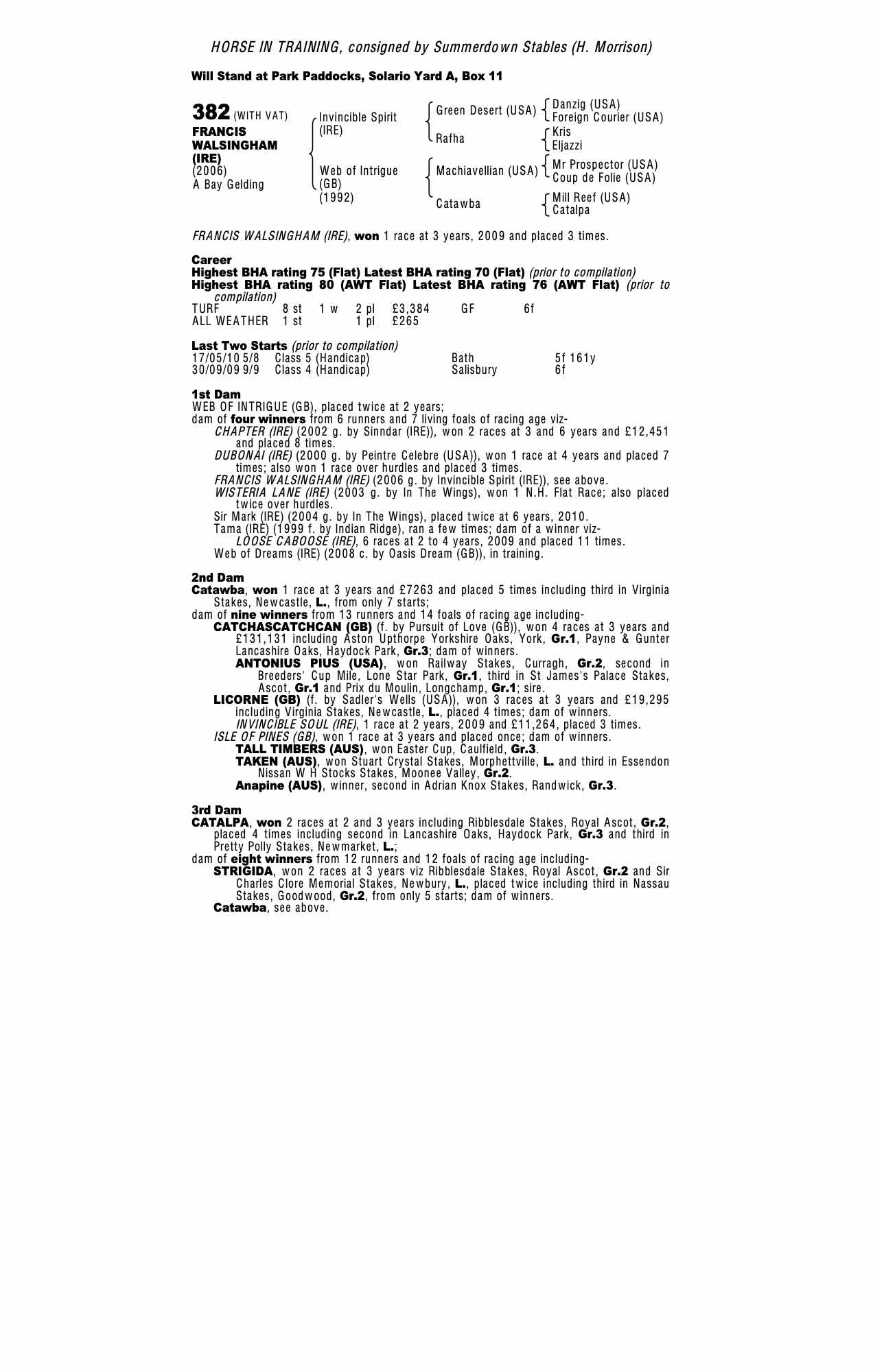 Autumn Horses in Training Sale 2010 lot 615 Web of Dreams (IRE) (C. by Oasis Dream (GB)), Manton House Stables (B. Meehan)=>Karin Gajda Lindberger 2,000 gns