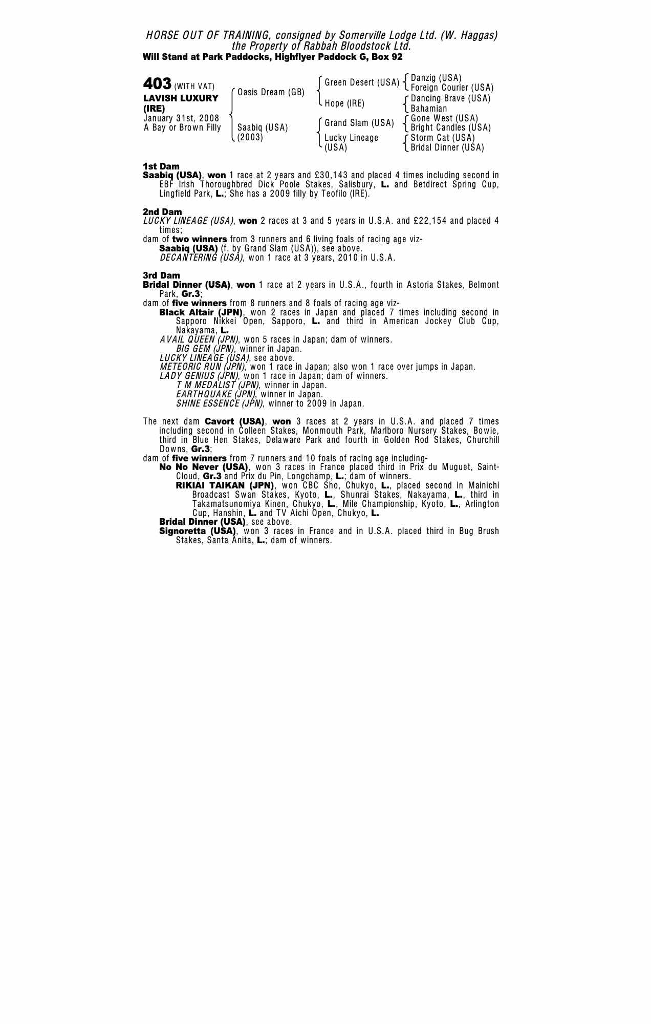 Consignor: Somerville Lodge Ltd. (W. Haggas)