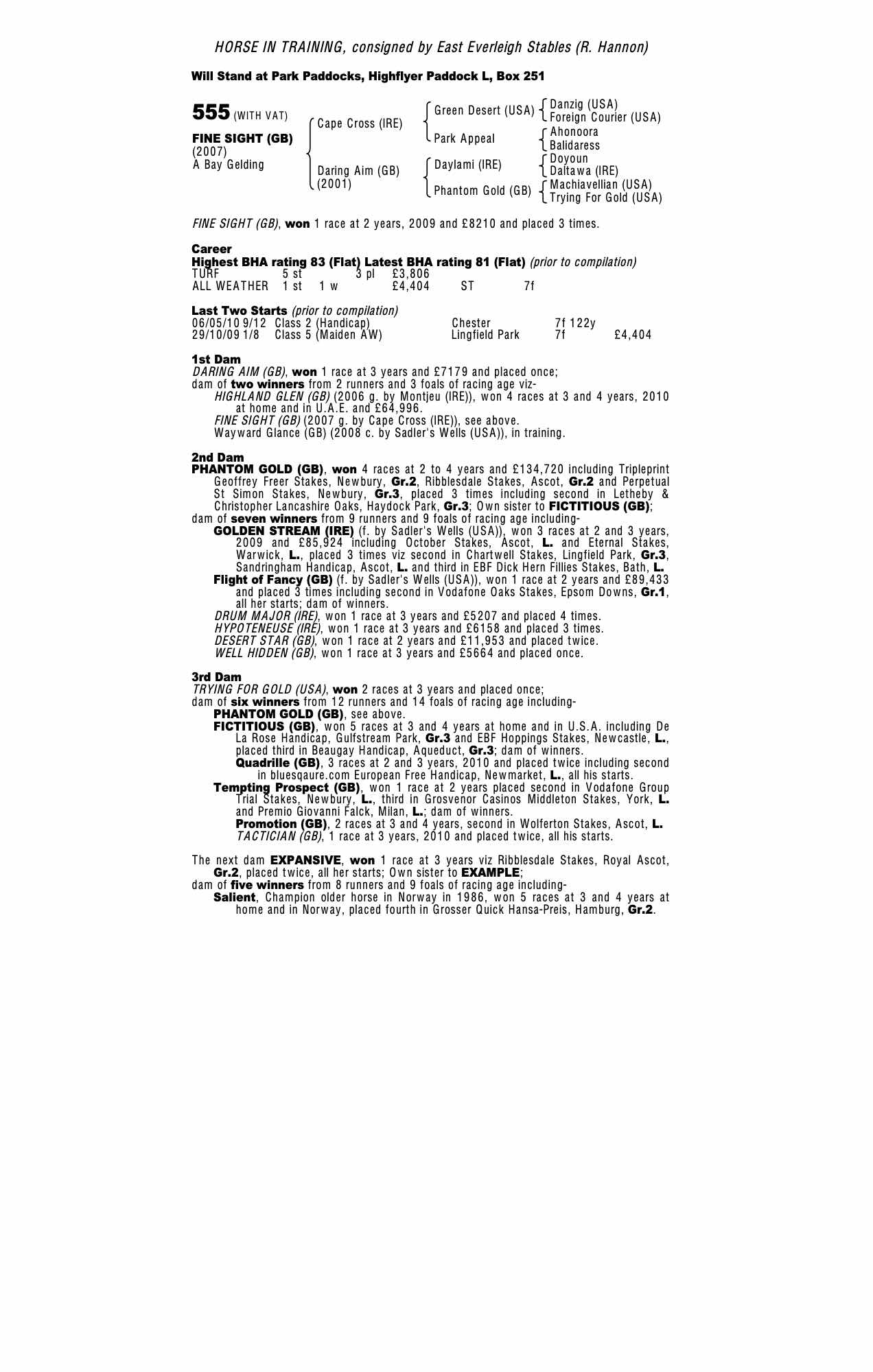 Autumn Horses in Training Sale 2011 lot 338 Wayward Glance (GB) (G. by Sadler's Wells (USA)), Fitzroy House Stables (M. Bell)=>Jack Callaghan 40,000 gns