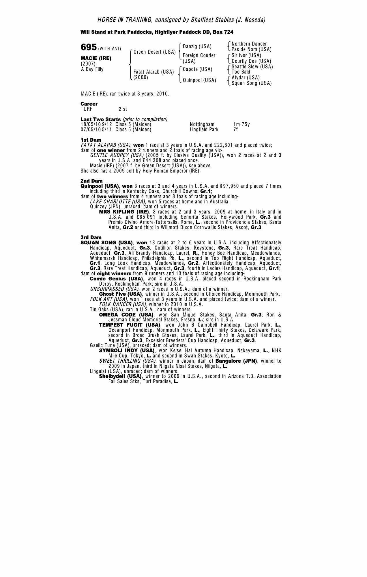 Consignor: Shalfleet Stables (J. Noseda)