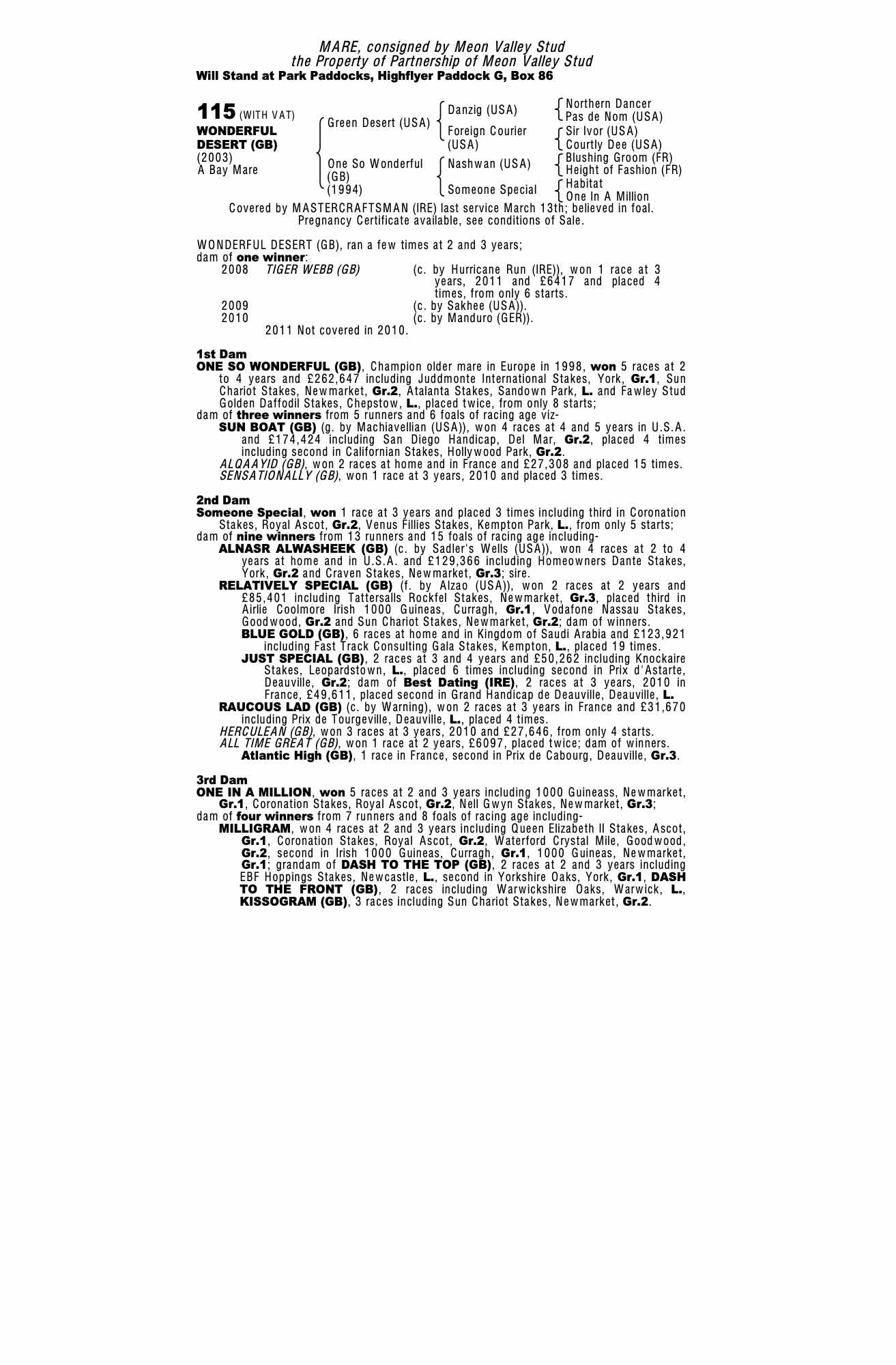 Consignor: Meon Valley Stud