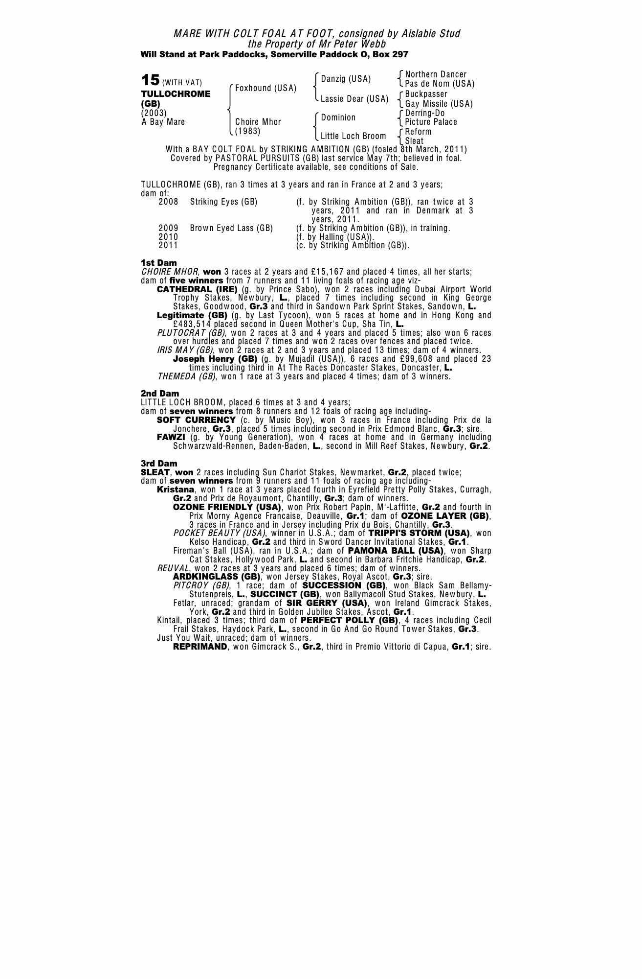 February Sale 2011 lot 148 Striking Eyes (GB) (F. by Striking Ambition (GB)), Beckhampton House Stables (R. Charlton)=>Lars Jakobsen 800 gns