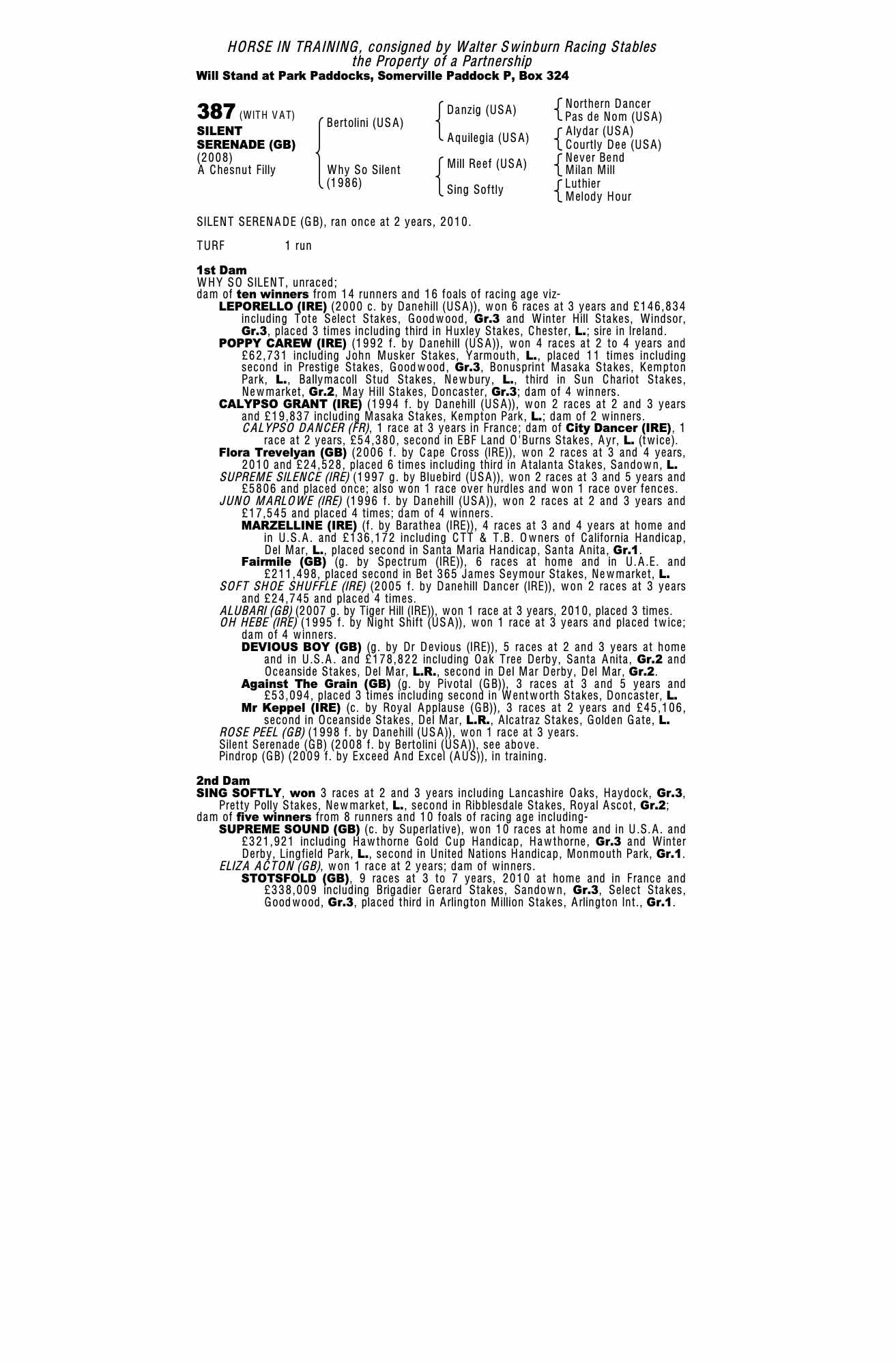 Autumn Horses in Training Sale 2000 lot 302 Supreme Silence (IRE) (C. by Bluebird (USA)), Pendley Farm Stables=>Jedd O'Keefe 14,000 gns