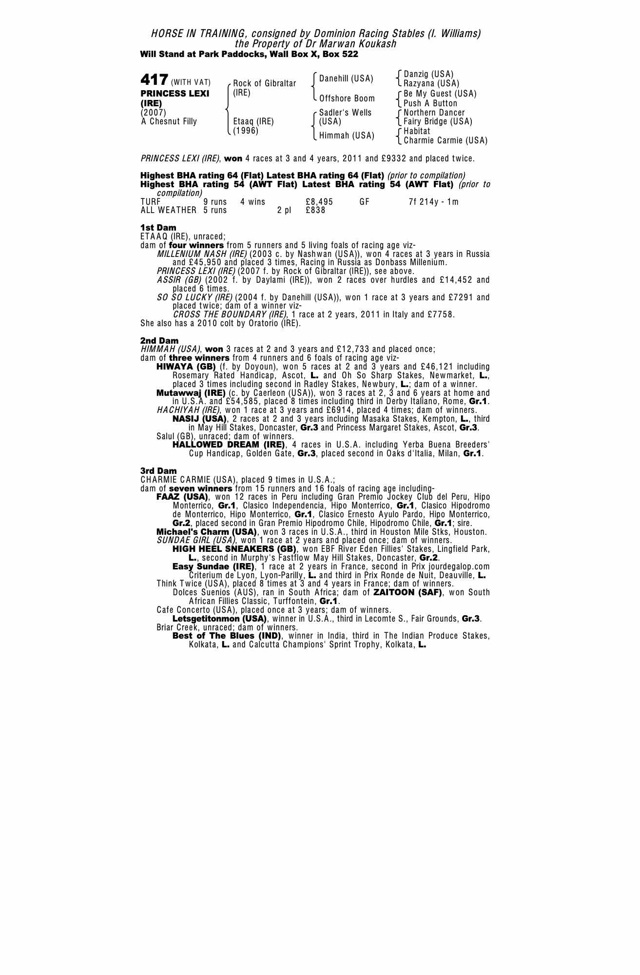 Consignor: Dominion Racing Stables (I. Williams)