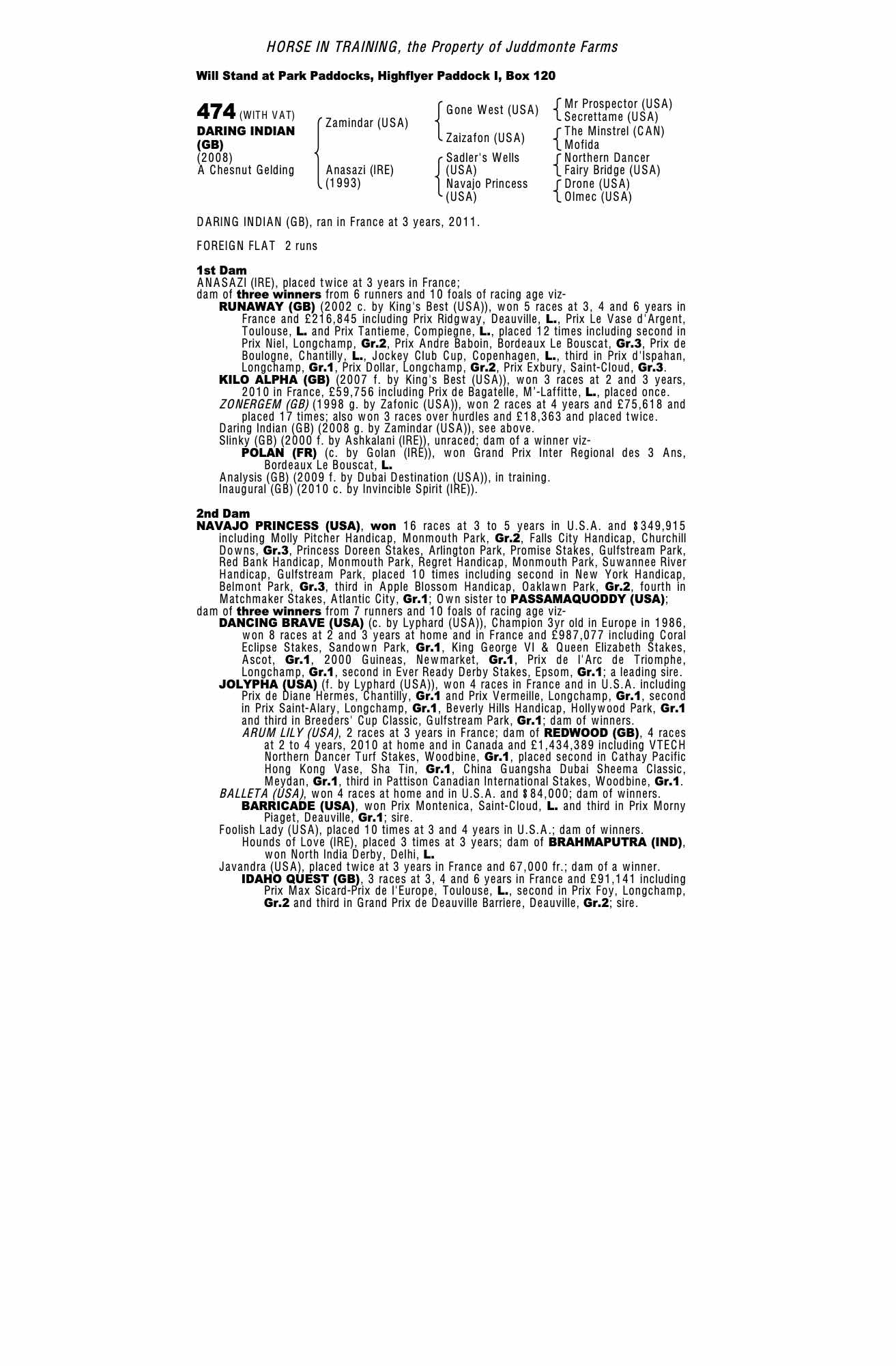 July Sale 2001 lot 351 Zonergem (GB) (C. by Zafonic (USA)), Juddmonte Farms=>C Gordon-Watson Bloodstock 3,000 gns