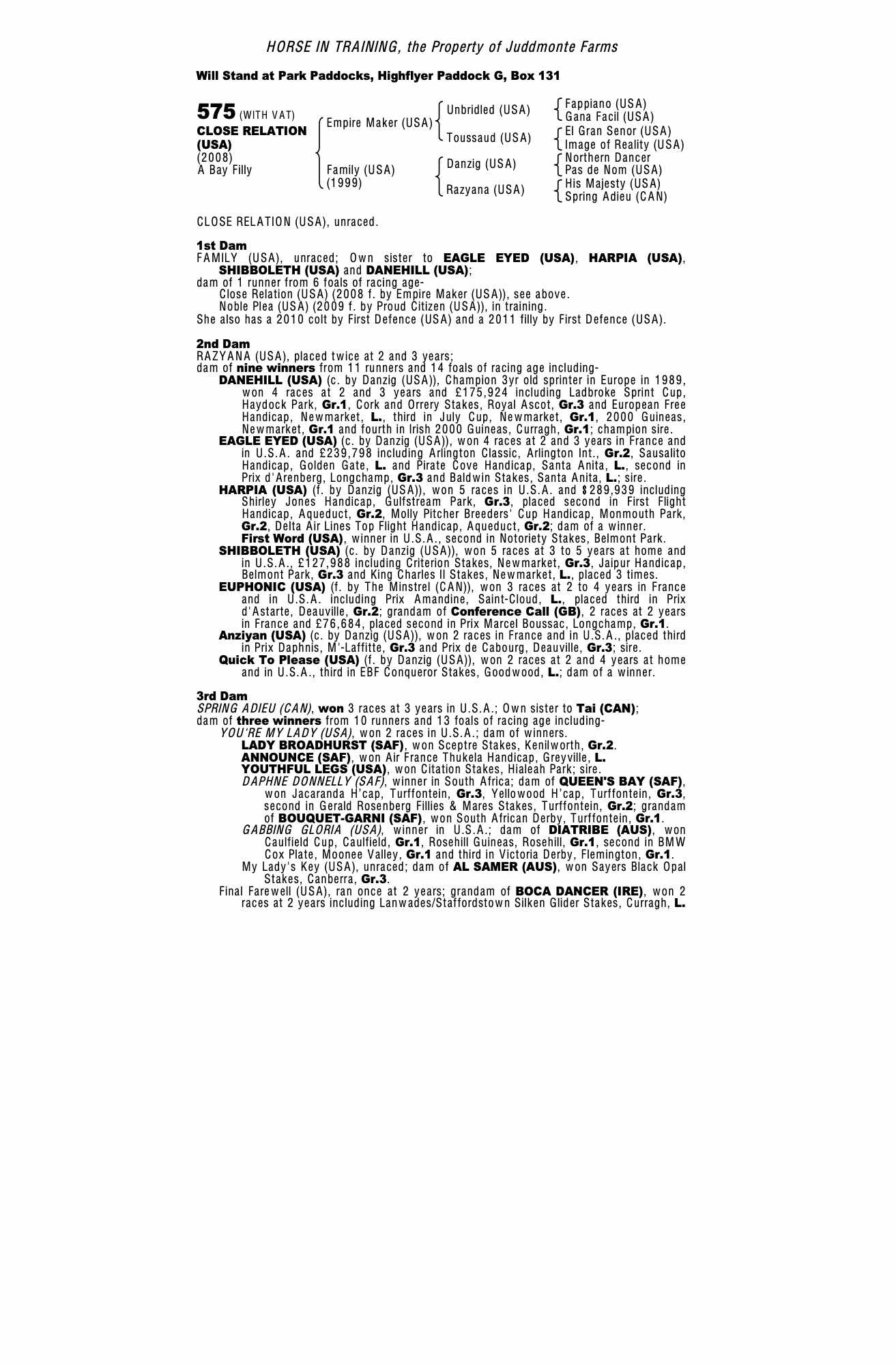 December Mare Sale 2007 lot 2575 Close Knit (USA) (F. by Hennessy (USA)), Juddmonte Farms=>A Brambilla 14,000 gns