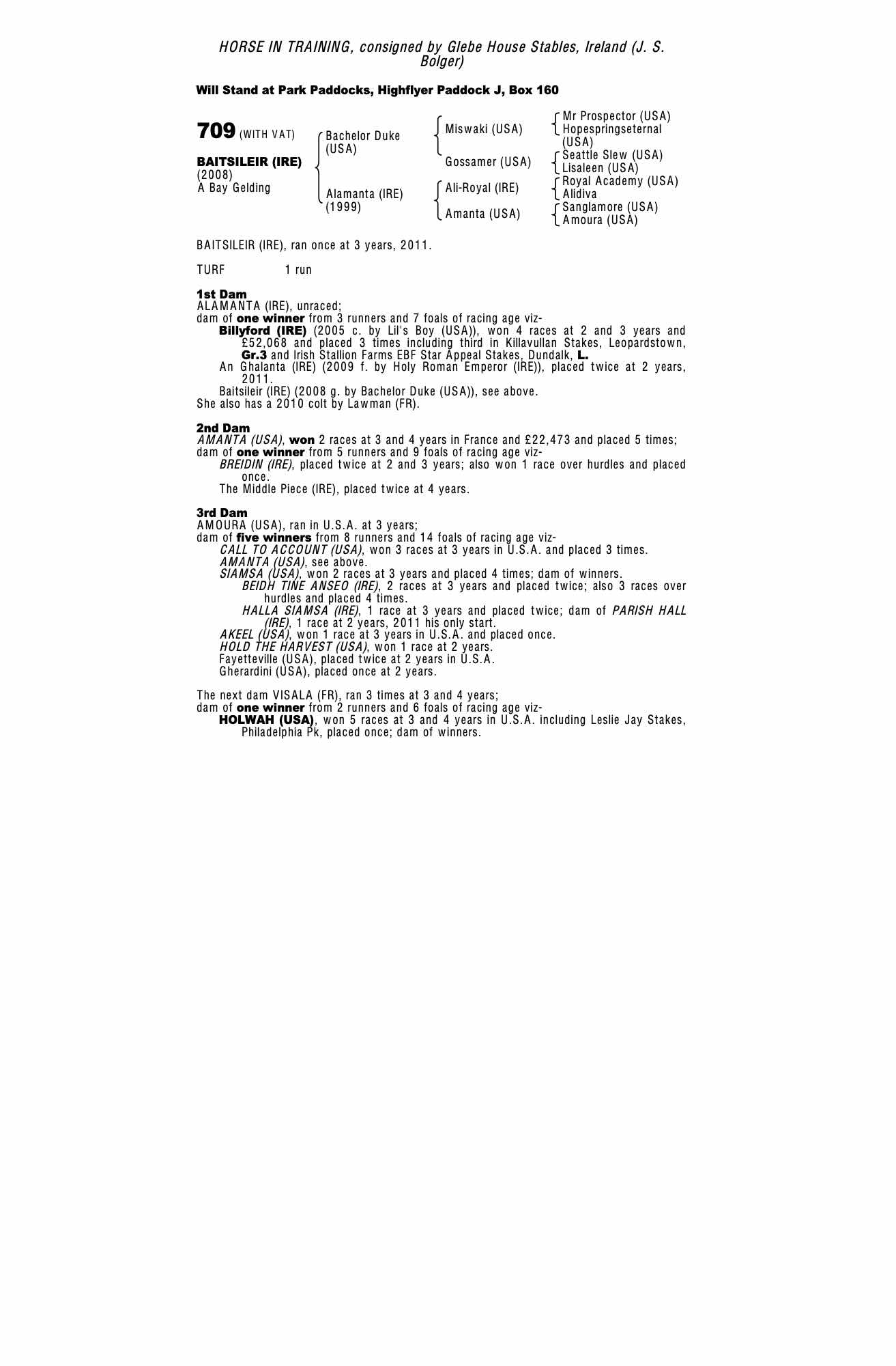 Consignor: Glebe House Stables, Ireland (J. S. Bolger)