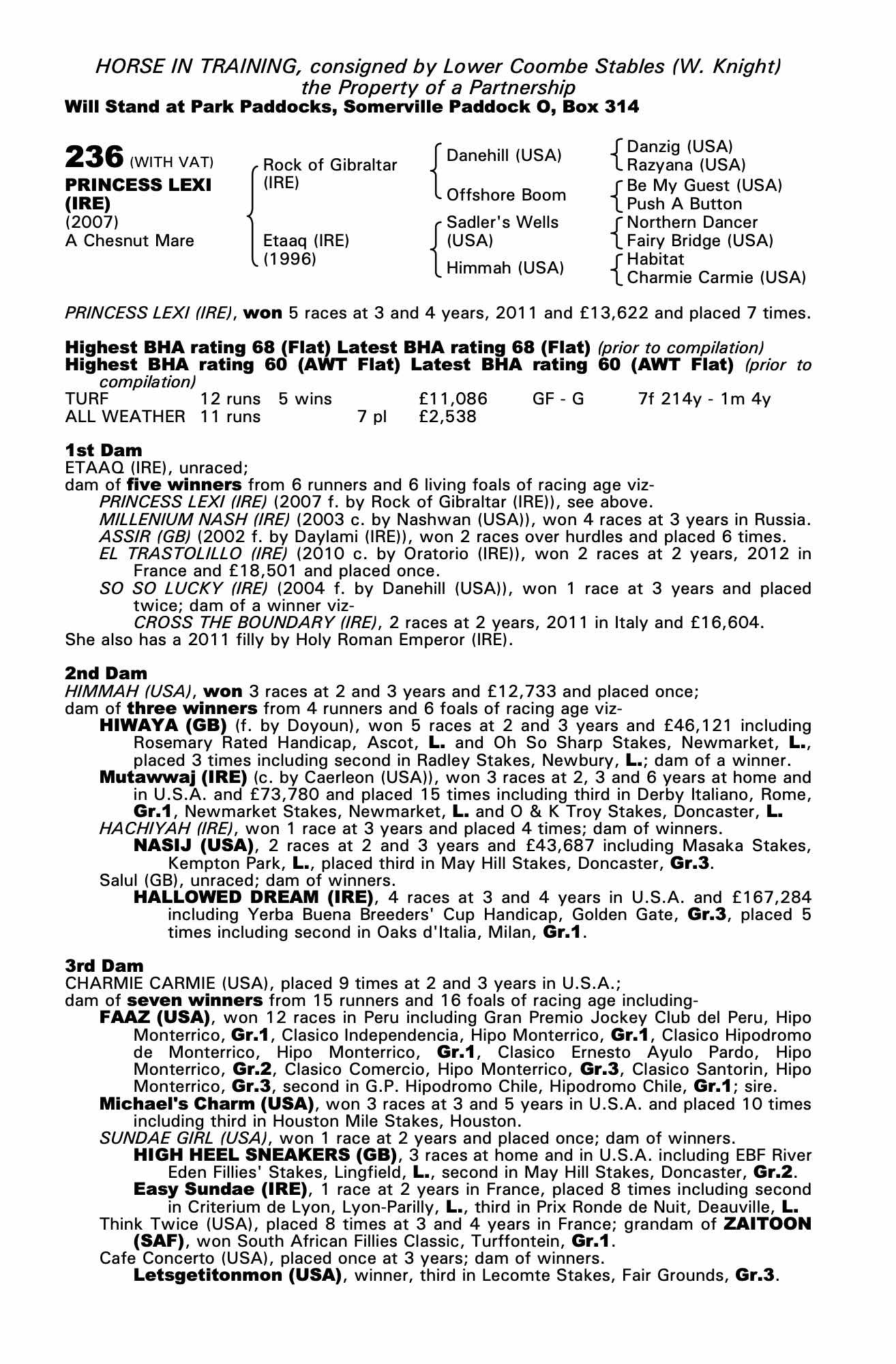July Sale 2011 lot 417, Dominion Racing Stables (I. Williams)=>SackvilleDonald 8,000 gns