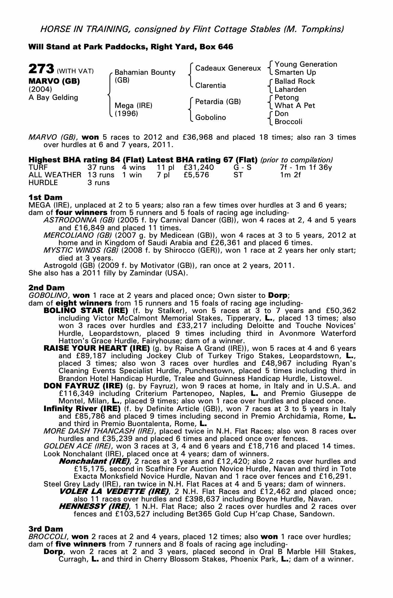 Consignor: Flint Cottage Stables (M. Tompkins)